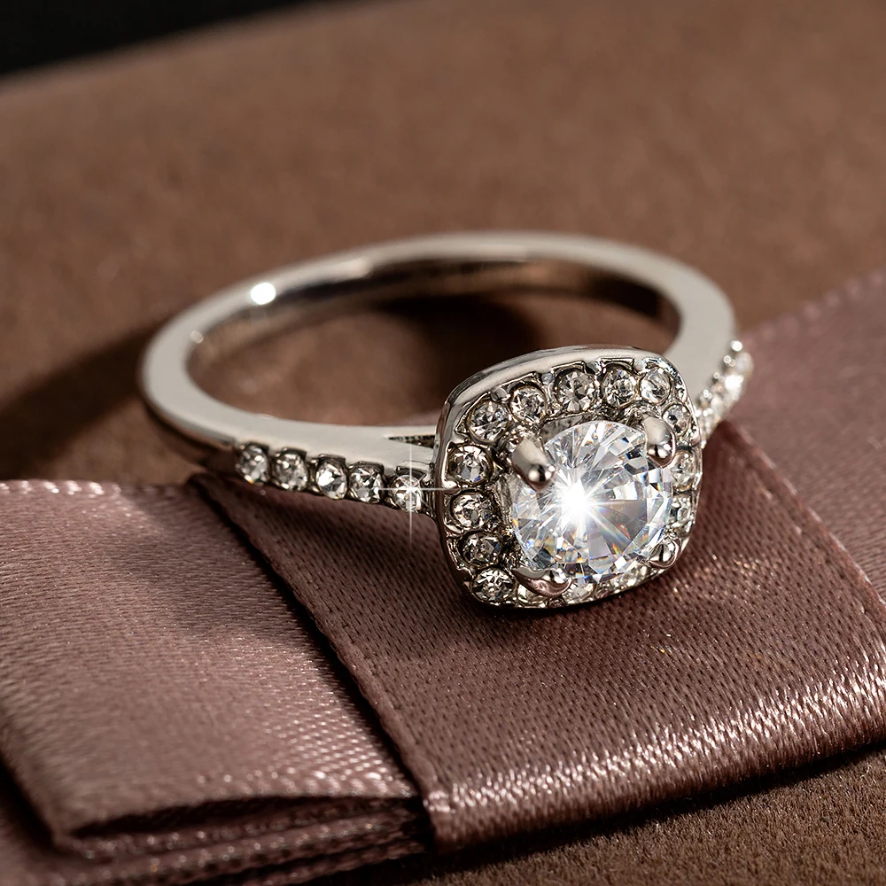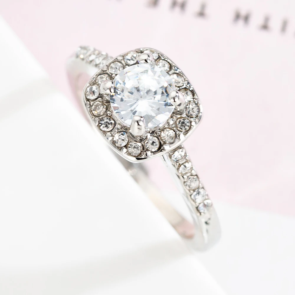 Классические свадебные кольца с кристаллами, женские серебряные белые блестящие циркониевые свадебные кольца, ювелирные подарки, бижутерия, Прямая поставка