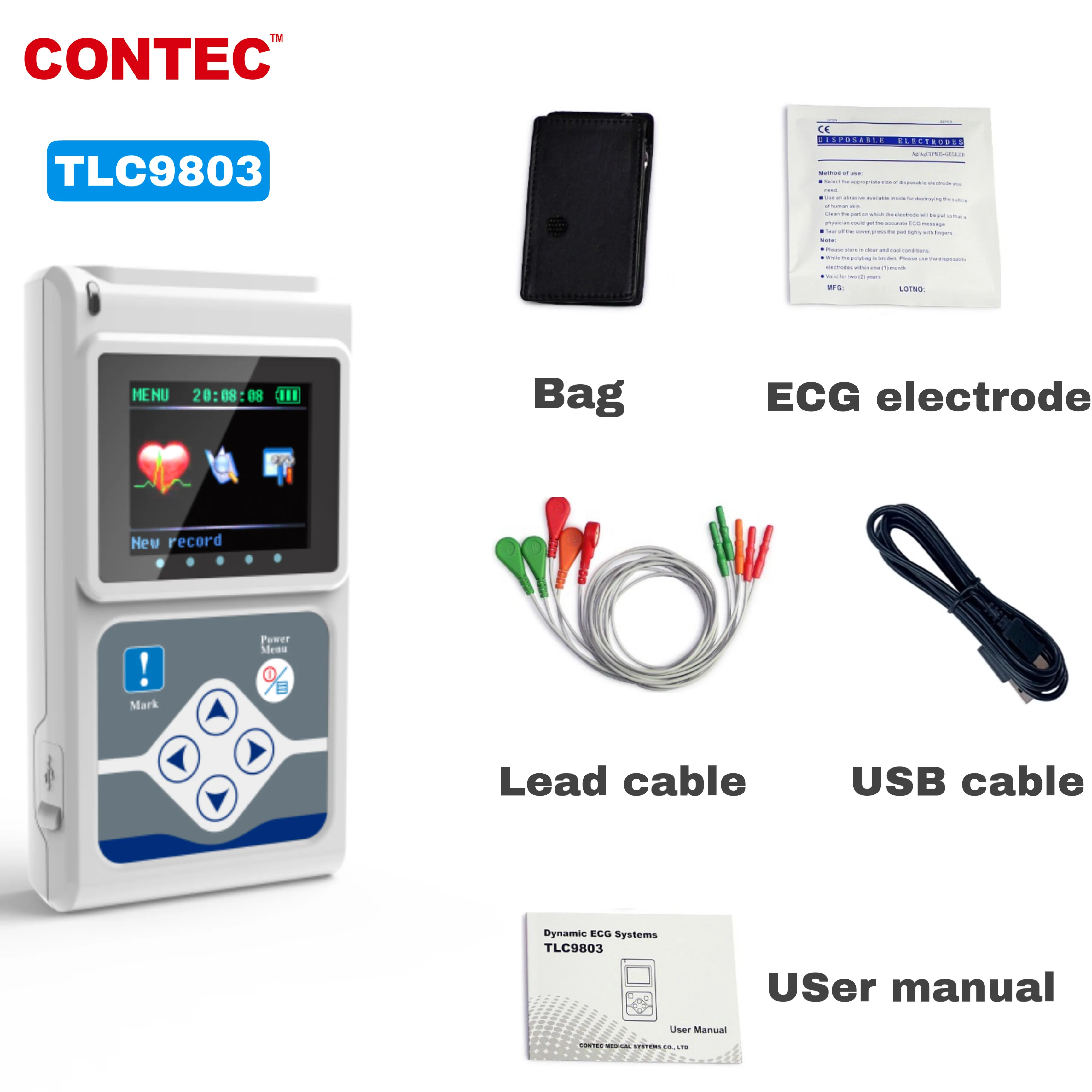 CONTEC 24H 3-проводной динамический Холтер ЭКГ монитор система ЭКГ, анализатор кардиостимулятора, программное обеспечение (загрузка Onilne) TLC9803