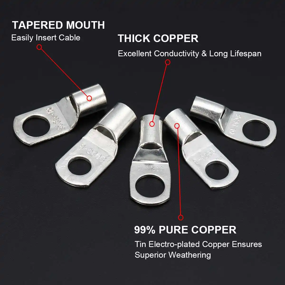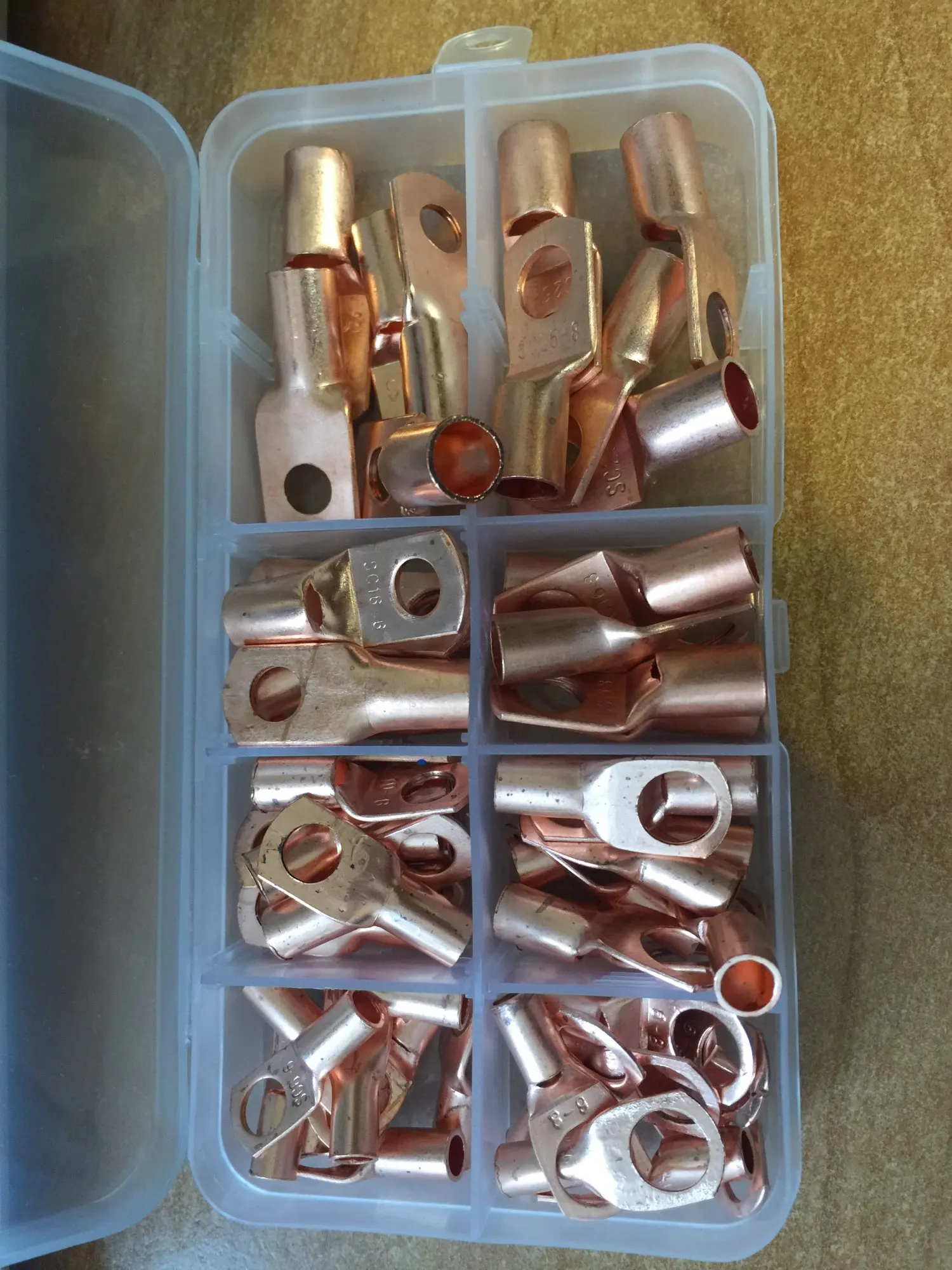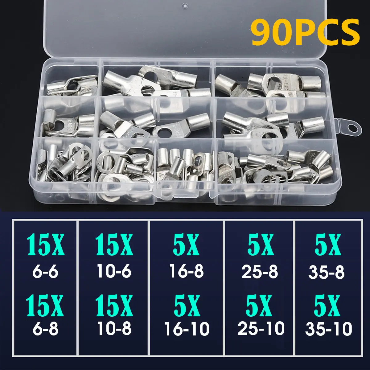 Набор медных наконечников для кабеля, комплект наконечников для кабеля с коробкой, специальные наконечники для кабеля, неизолированные кабельные разъемы для аккумулятора, 60 90170220 шт.