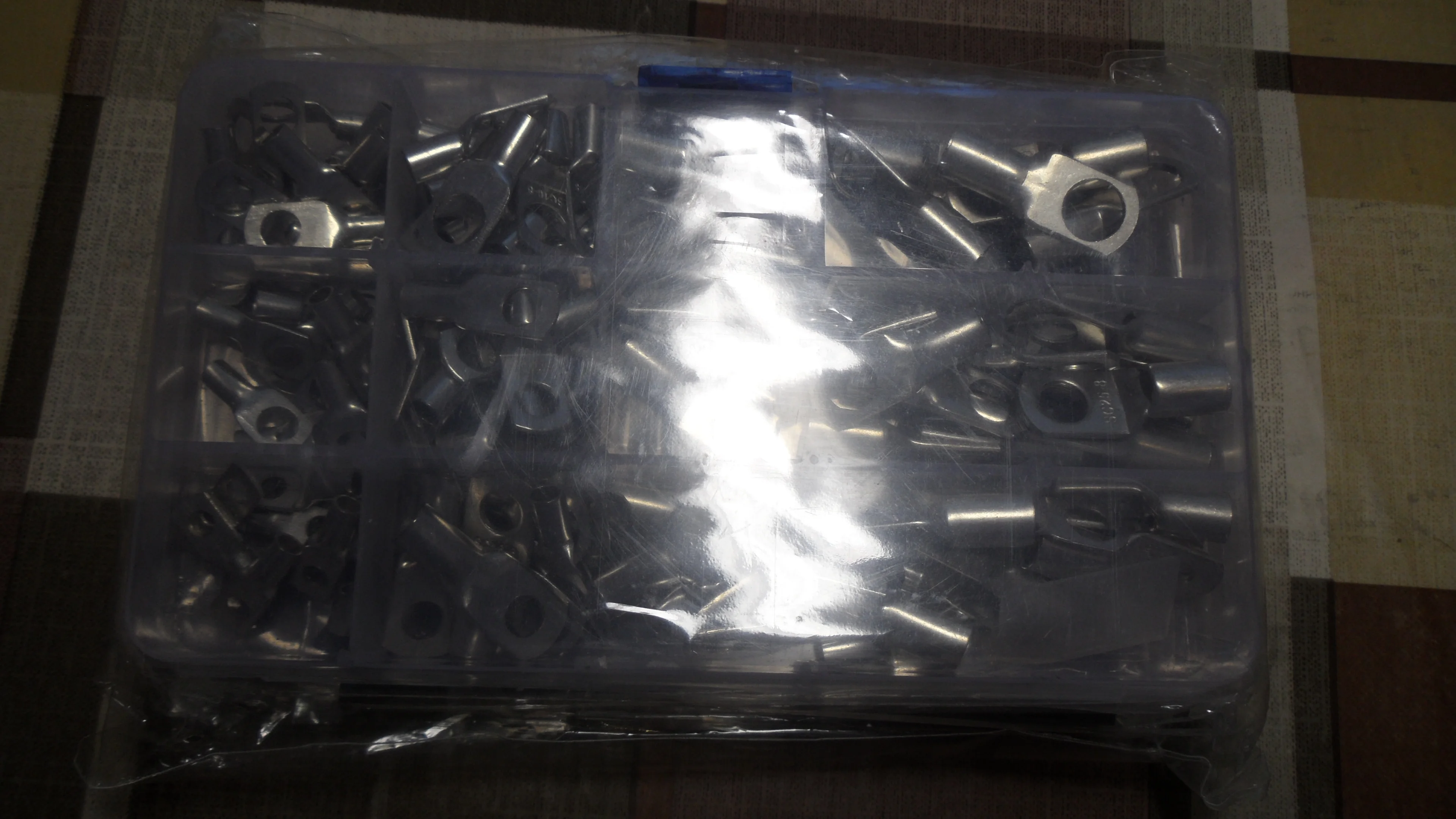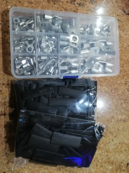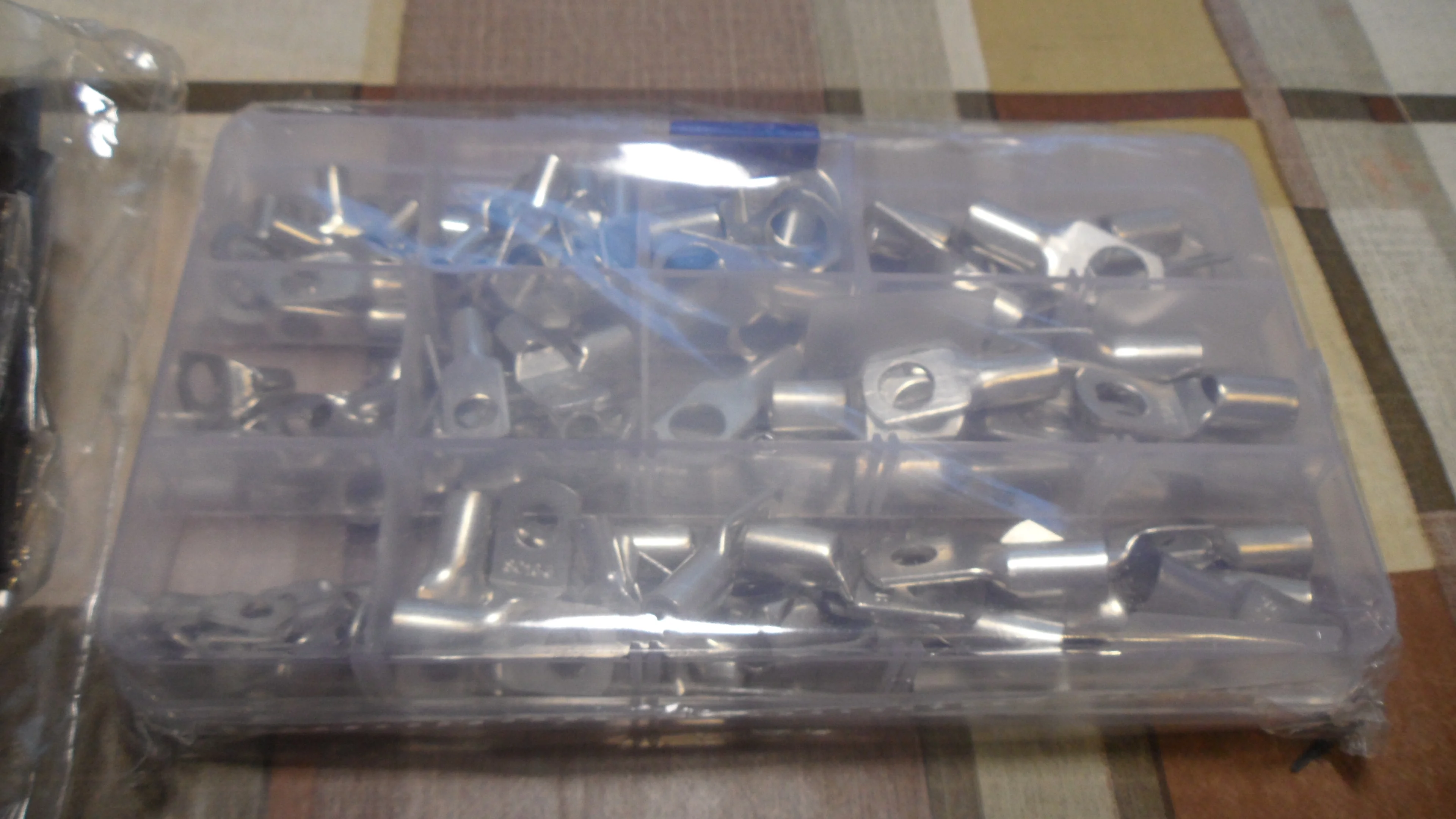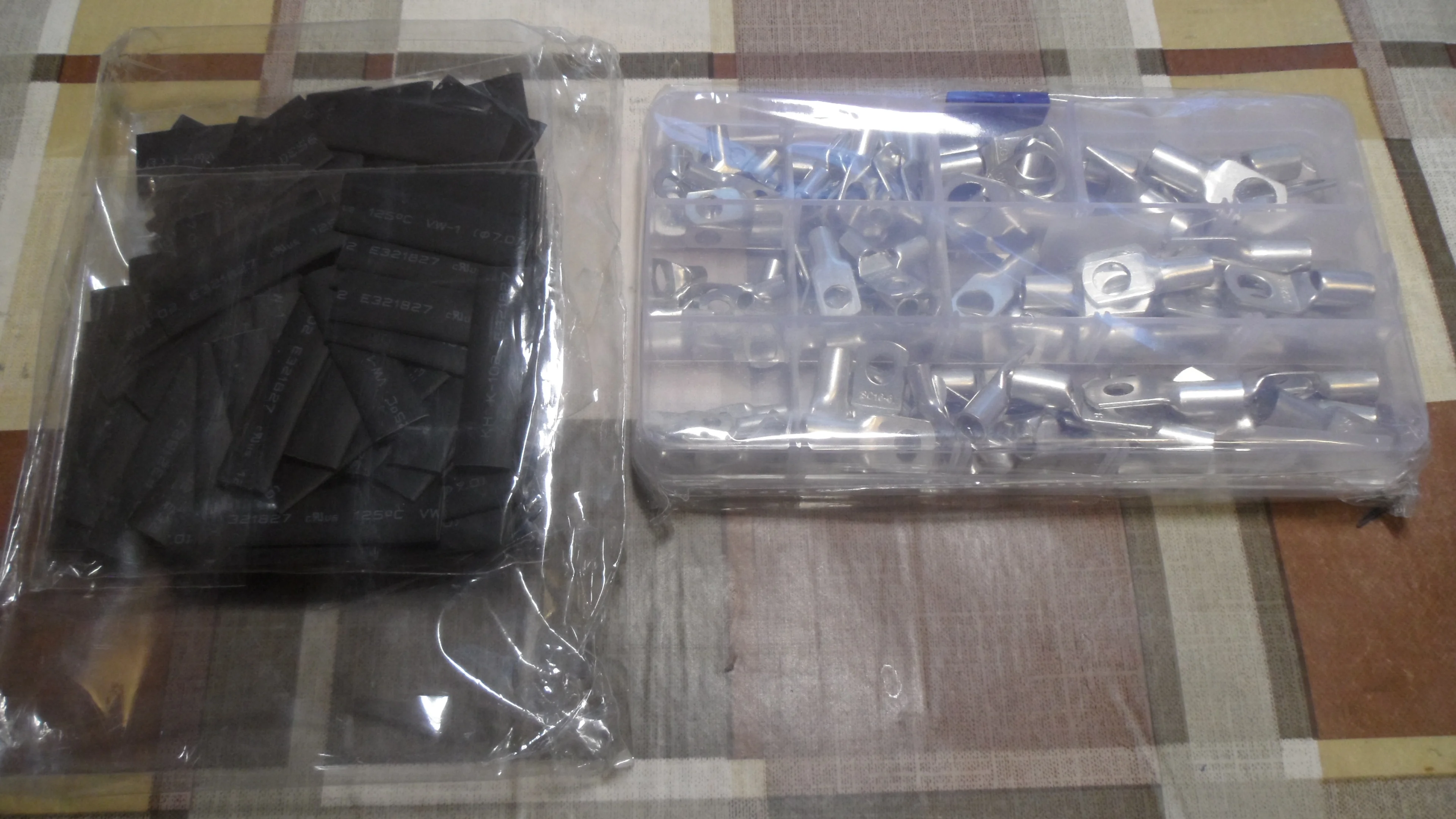 Все как в описании. Материал скорее латунь луженая, для меди слишком твердая, пассатижами просто так не сжать, медь гораздо мягче. В комплекте идут термоусадочные трубки.