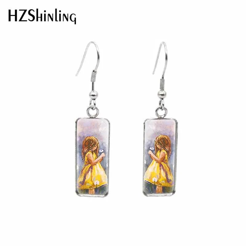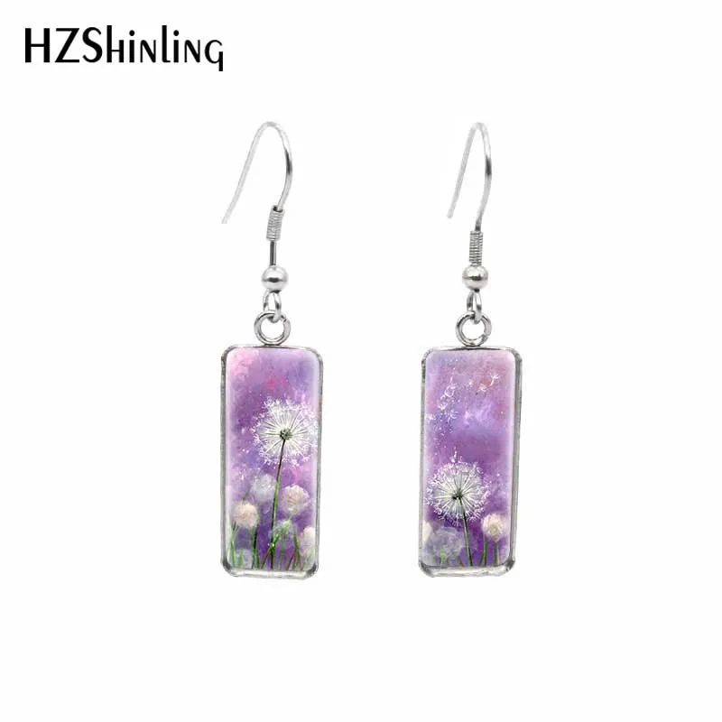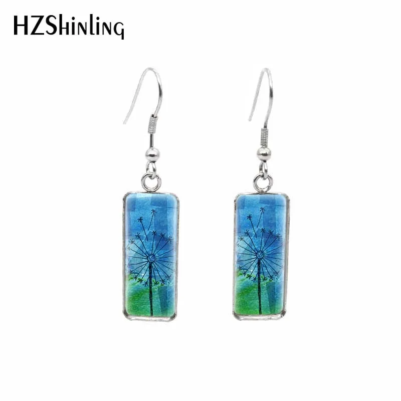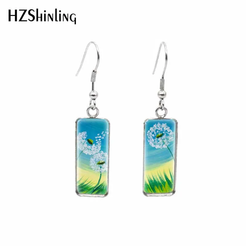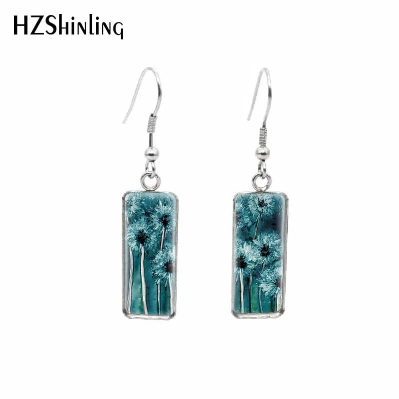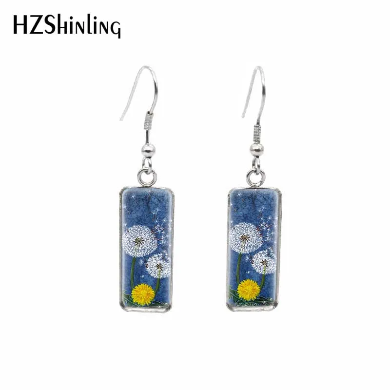 2020 новые прямоугольные серьги с рисунком одуванчика, цветочные узоры, стеклянные серьги с крючком, ювелирные изделия, подарки для женщин