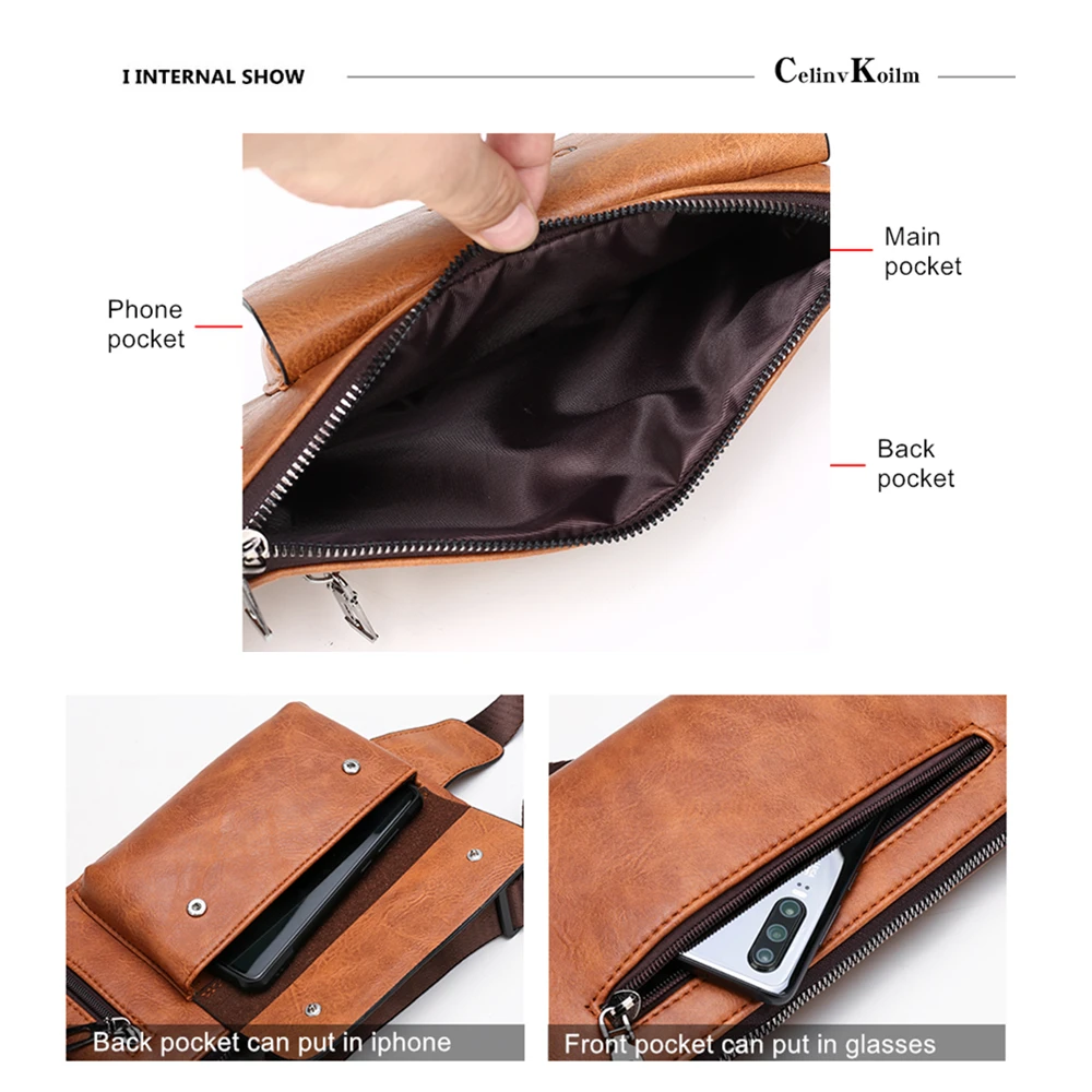 Бренд Celinv Koilm, мужской модный рюкзак-слинг, повседневная кожаная нагрудная поясная сумка через плечо, рюкзаки для подростков в колледже