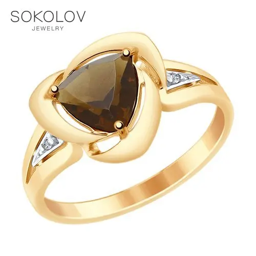 Кольцо SOKOLOV из золочёного серебра с раухтопазом и фианитами, Серебро, 925, Женское, Оригинальная продукция