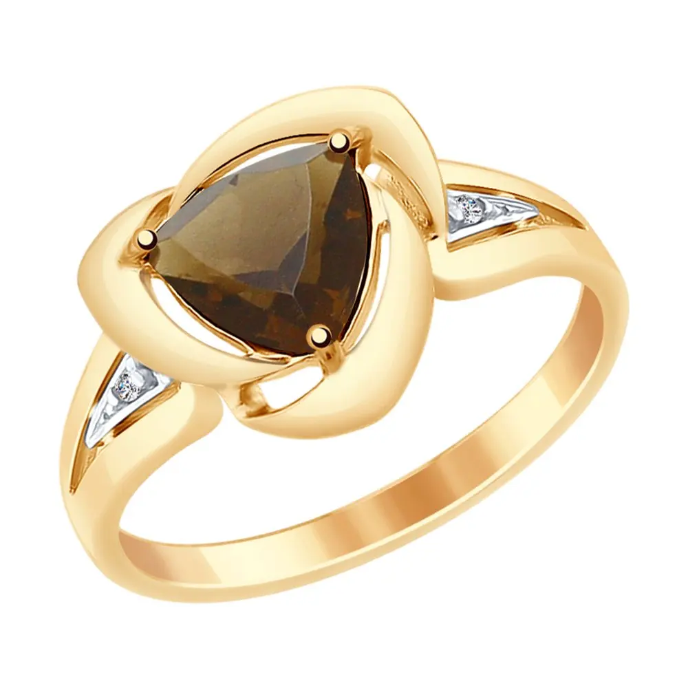Кольцо SOKOLOV из золочёного серебра с раухтопазом и фианитами