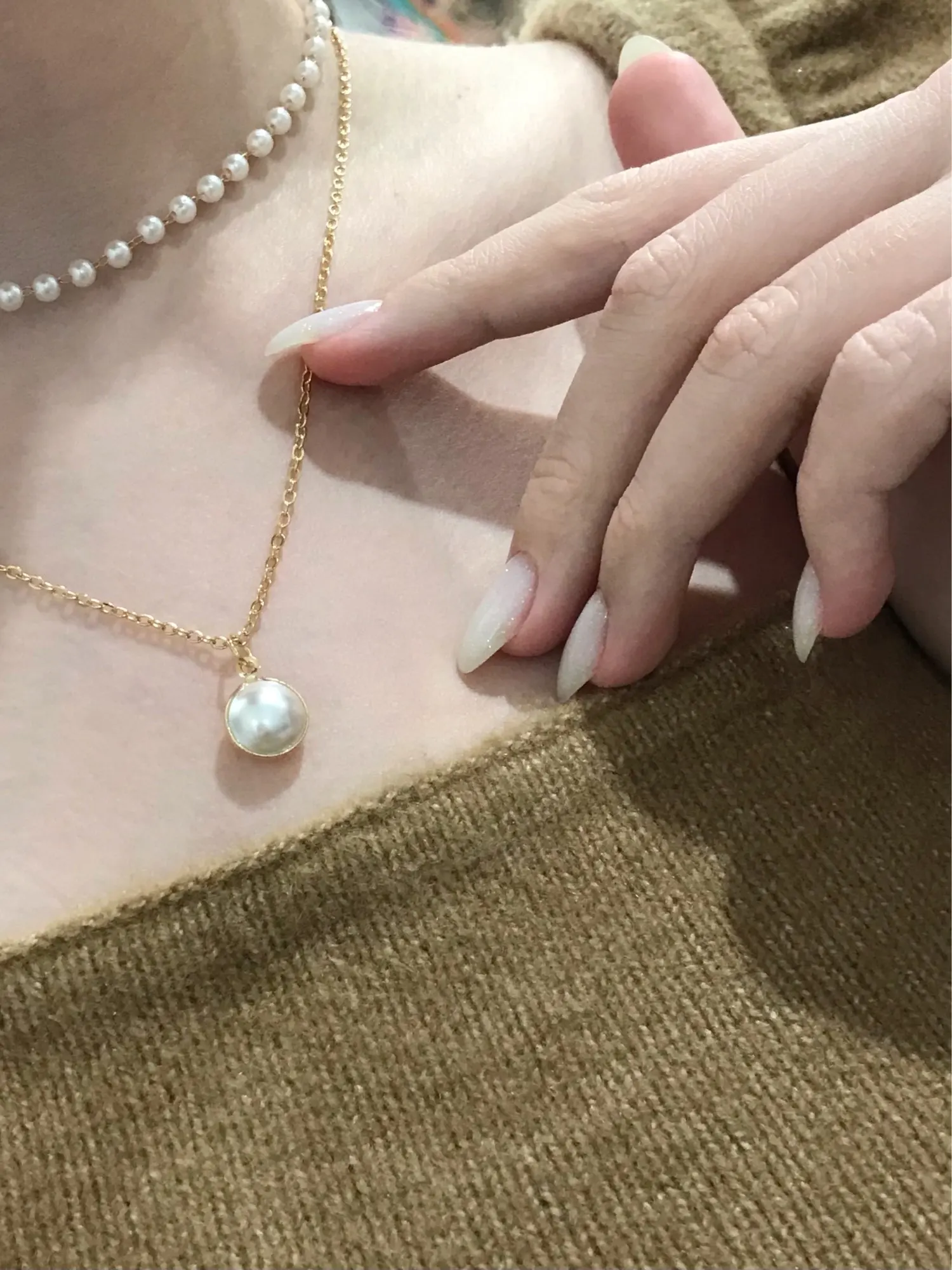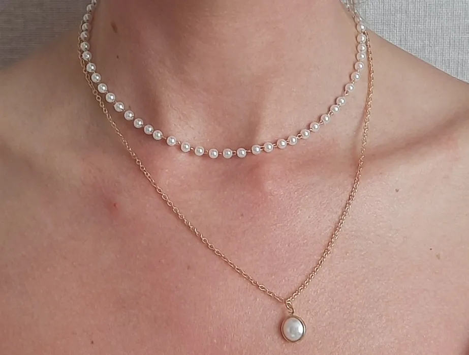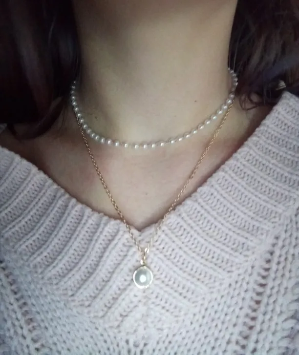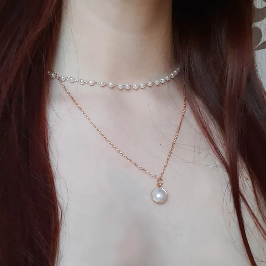 Женское Ожерелье-чокер, двухслойная цепочка, золотое ожерелье с жемчужной подвеской в Корейском стиле, 2020