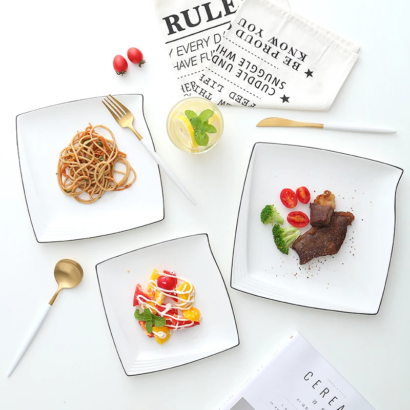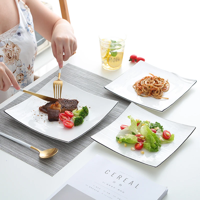 Европейская посуда 8 '-10 дюймов, Западная тарелка, тарелки для стейков, домашняя керамическая квадратная тарелка, тарелка для торта, плоская тарелка