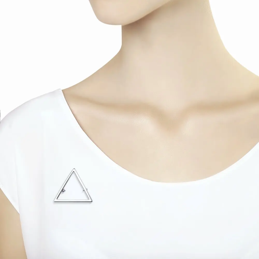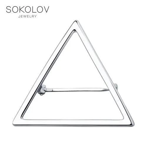 Брошь SOKOLOV из серебраВоплощение модного минимализма и геометрии – серебряная брошь в виде треугольника. Строгость линий, привычная форма, лаконичный дизайн и оптимальный размер позволяют носить украшение каждый день или выводить его в свет с нарядами любых цветов. При желании брошь поможет стилизовать дерзкий гранжевый лук или, напротив, по-деловому элегантный. С ней легко экспериментировать и всегда попадать в тренд!