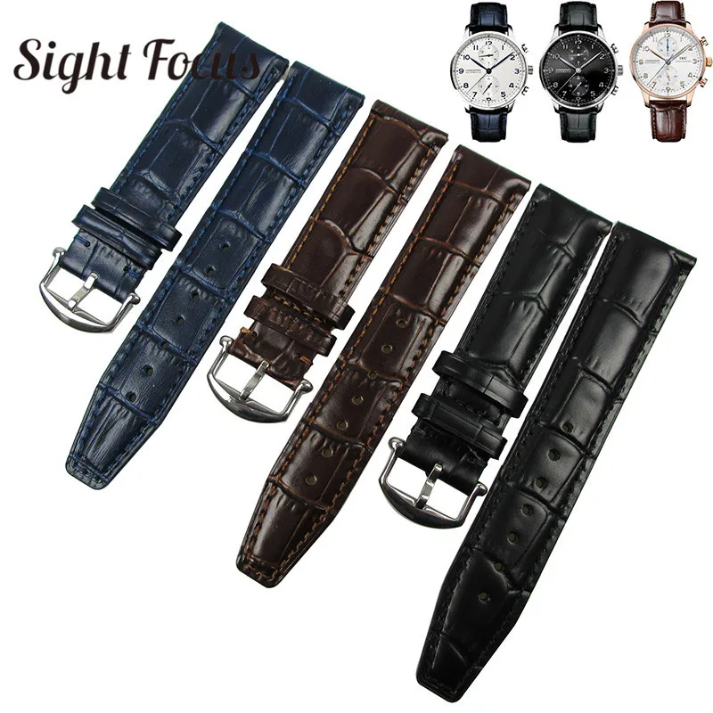 Ремешок для часов IWC Portofino Mark сменный кожаный ремешок, 20 мм, черный, кофейный, синий, мужской браслет