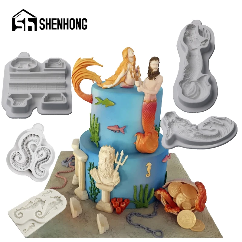 SHENHONG Sea Theme украшение торта помадка силиконовая форма русалка Нептун колонны паста плесень Глина Ремесло Fimo Выпечки Кондитерская форма
