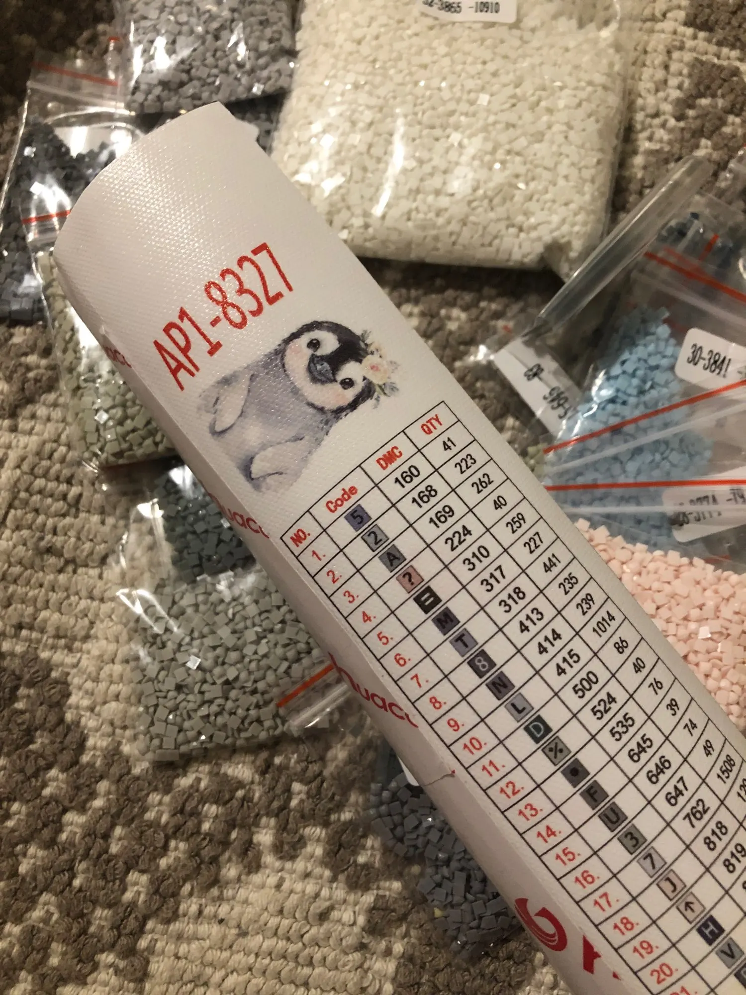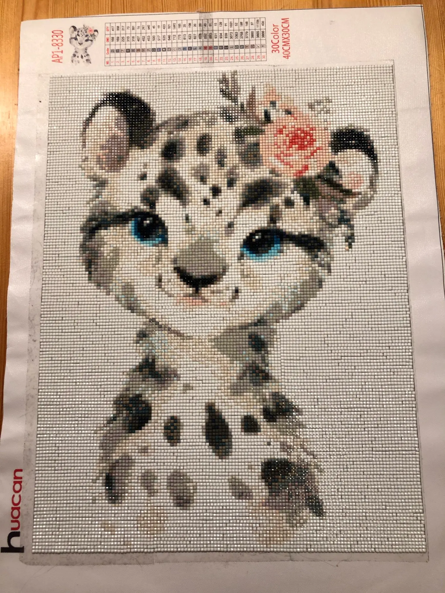 Этот продукт пришел так же, как я ожидал. Я думаю, что это очень мило и очень хороший размер. Холст имеет четкие обозначения и достаточно липкий для драгоценных камней. У меня не было никаких Бриллиантов (см. Последнюю фотографию), но я был болен, что вернусь. Он пришел через 2-3 недели, и мне потребовался месяц, чтобы закончить.