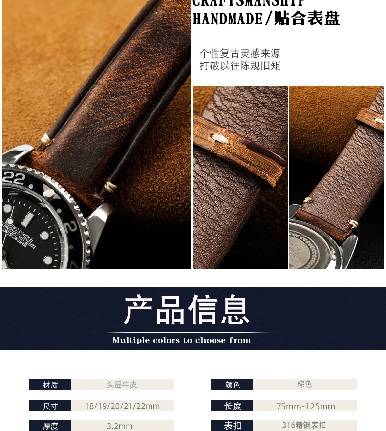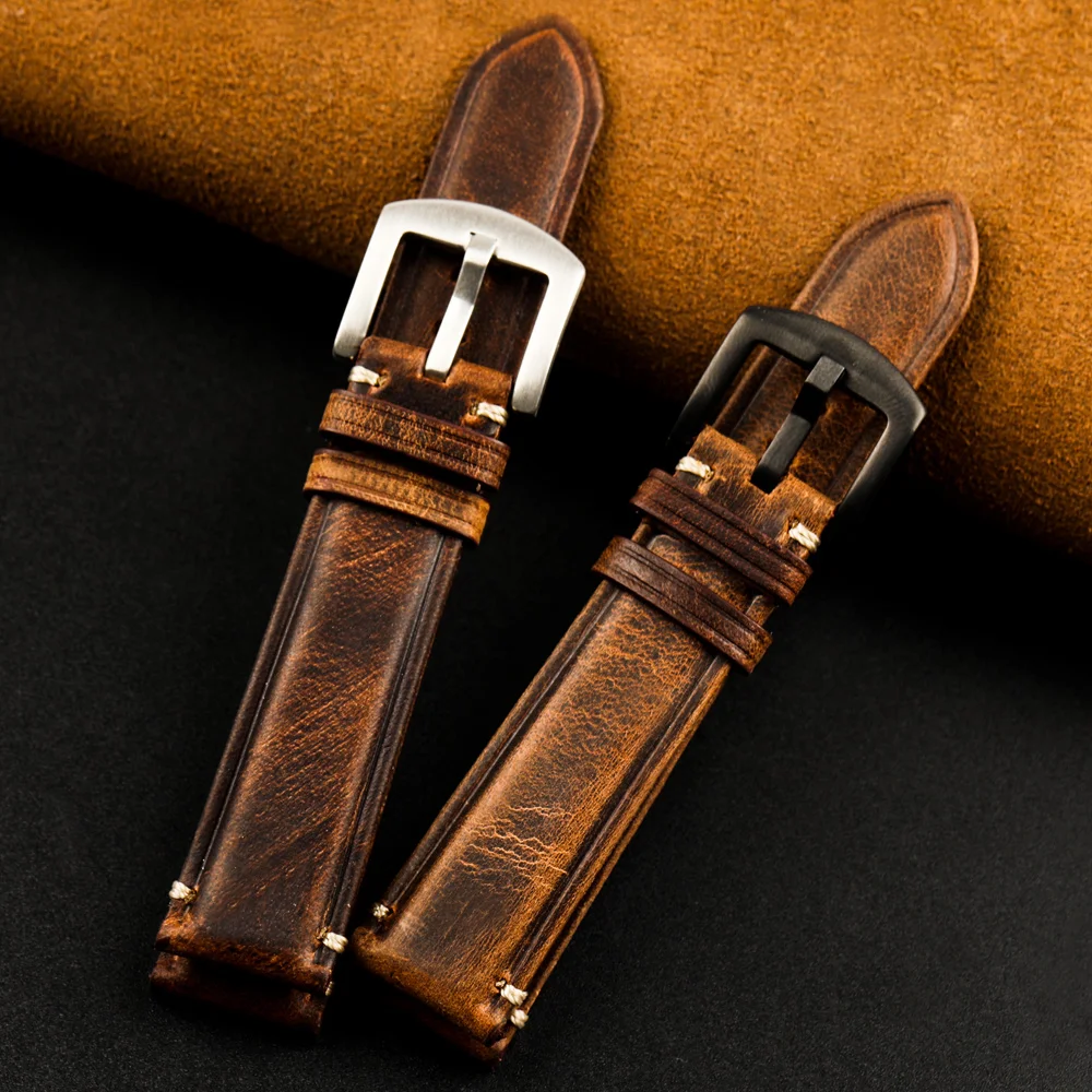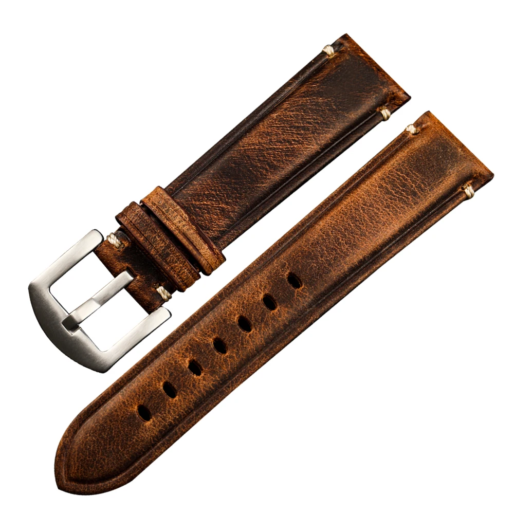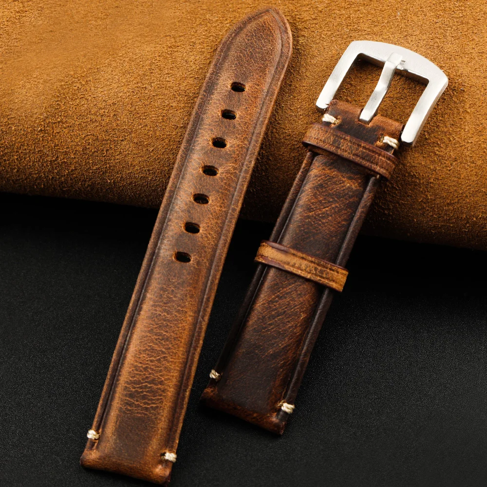 Ремешок для часов ручной работы из телячьей кожи, винтажный мягкий мужской браслет, 18 19 20 21 22 мм