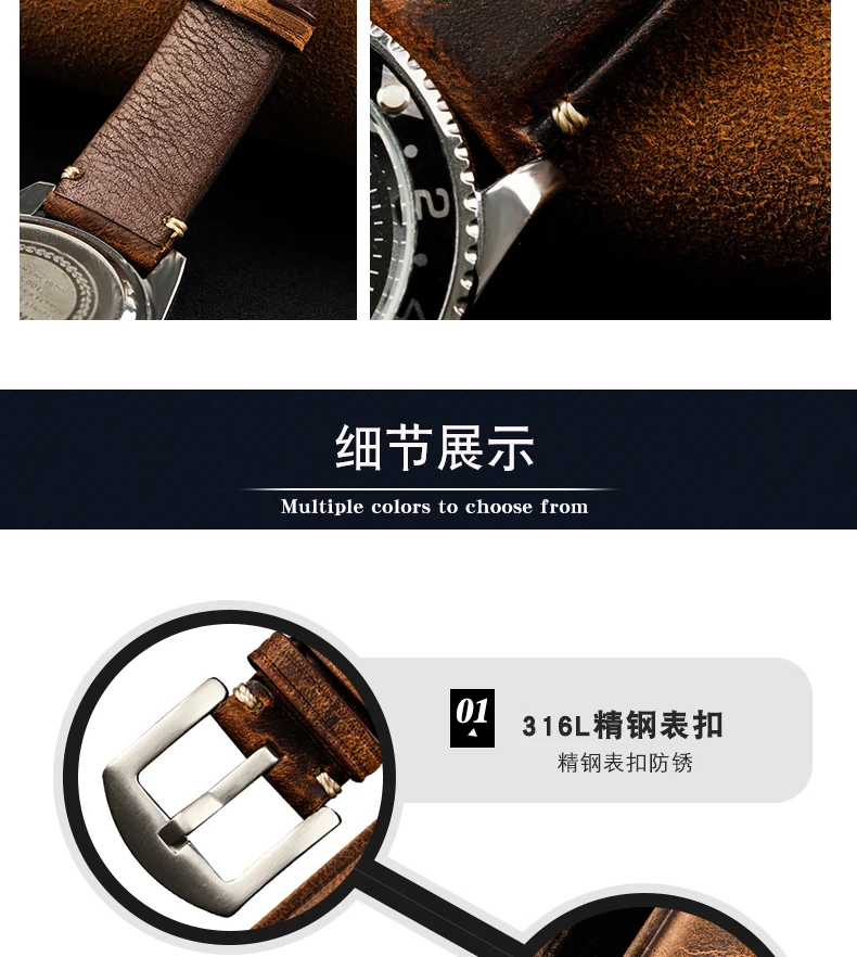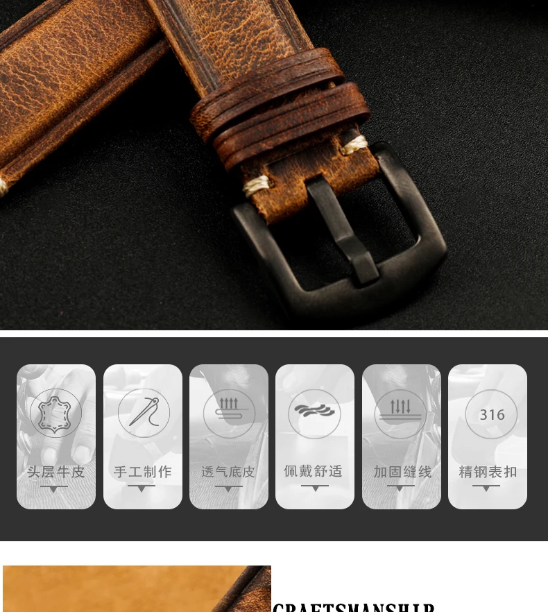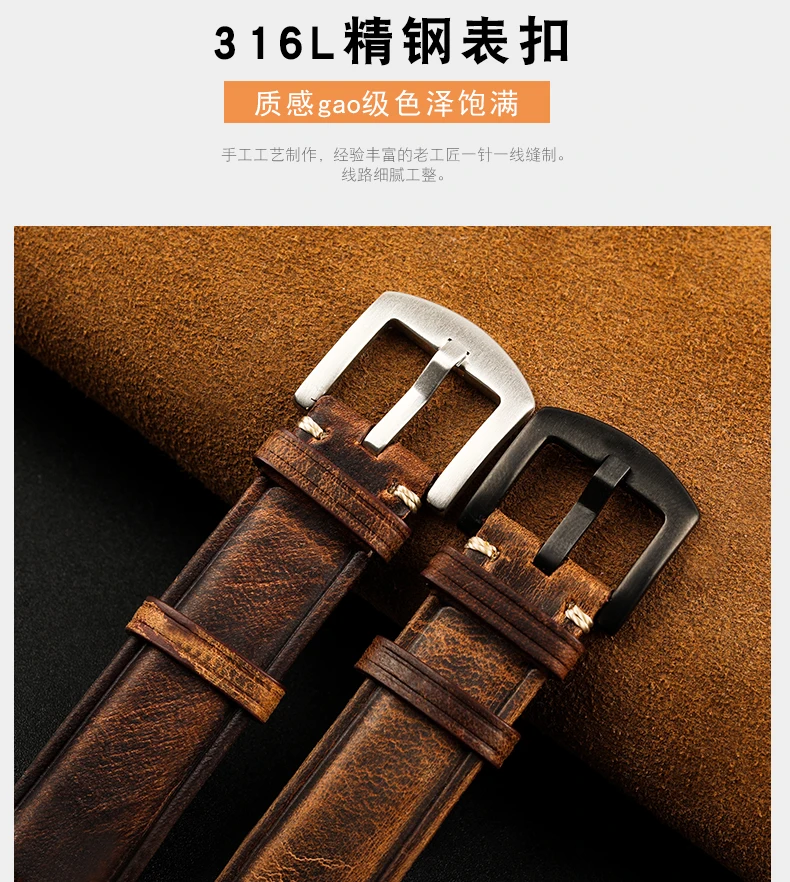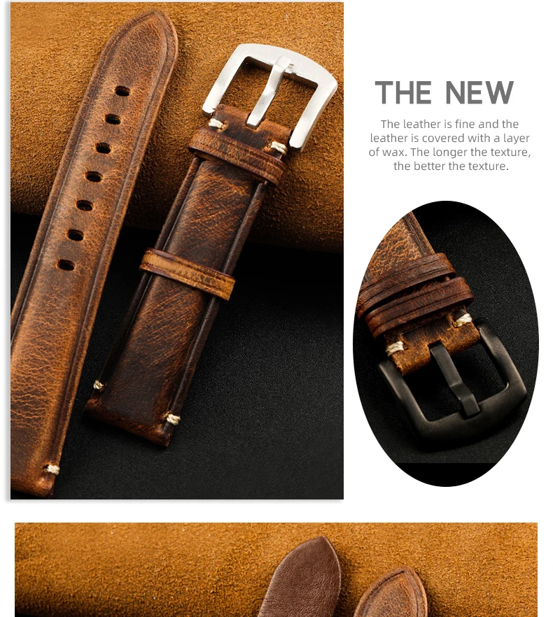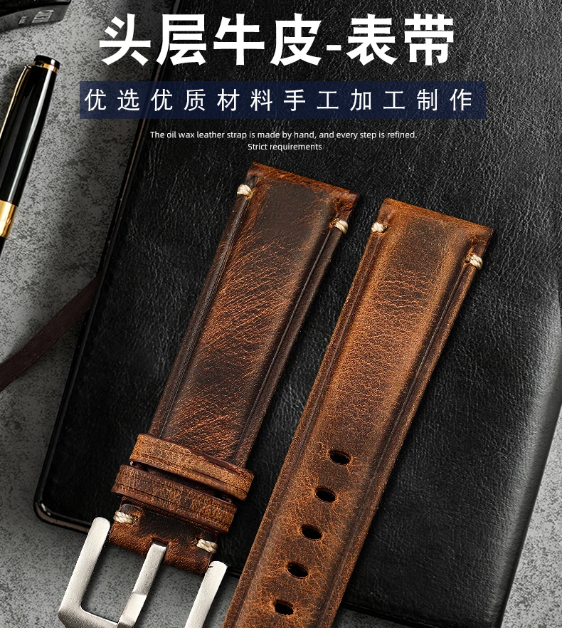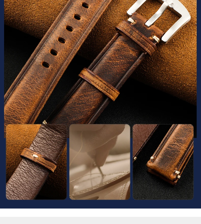 Ремешок для часов ручной работы из телячьей кожи, винтажный мягкий мужской браслет, 18 19 20 21 22 мм