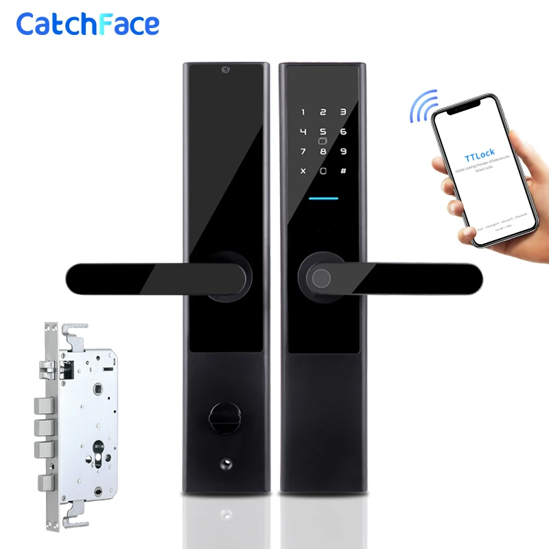Дверной смарт-замок с Биометрическим распознаванием отпечатков пальцев, цифровой Wi-Fi-замок с приложением и Bluetooth, со сканером отпечатков пальцев, электронный домашний врезной замок