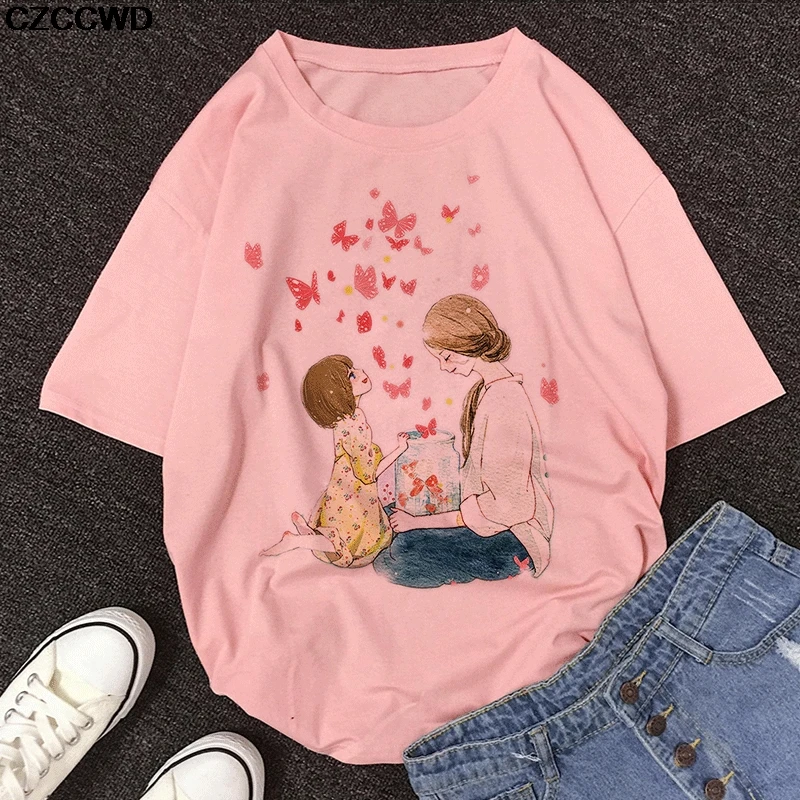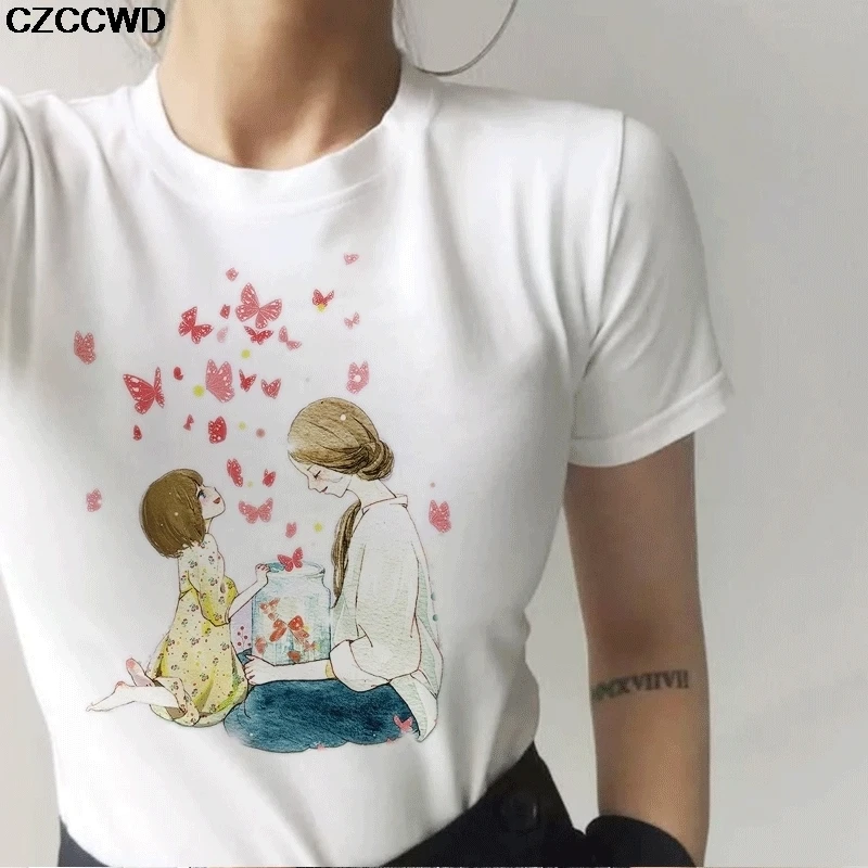 Подарок на день матери, летние повседневные женские футболки, уличная одежда Ulzzang, футболка с милым принтом, корейские топы, футболка с коротким рукавом в стиле Харадзюку