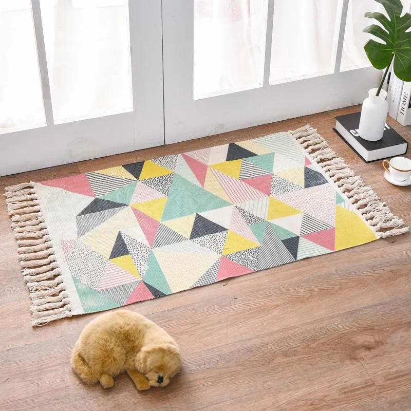 Богемный вход декоративный хлопковый льняной ручной тканый геометрический Коврик для спальни ковер с кисточкой