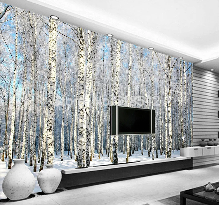 Пользовательские 3D фотообои, березовый лес, снежный пейзаж, гостиная, спальня, фон за ТВ, настенные фрески, обои 3D