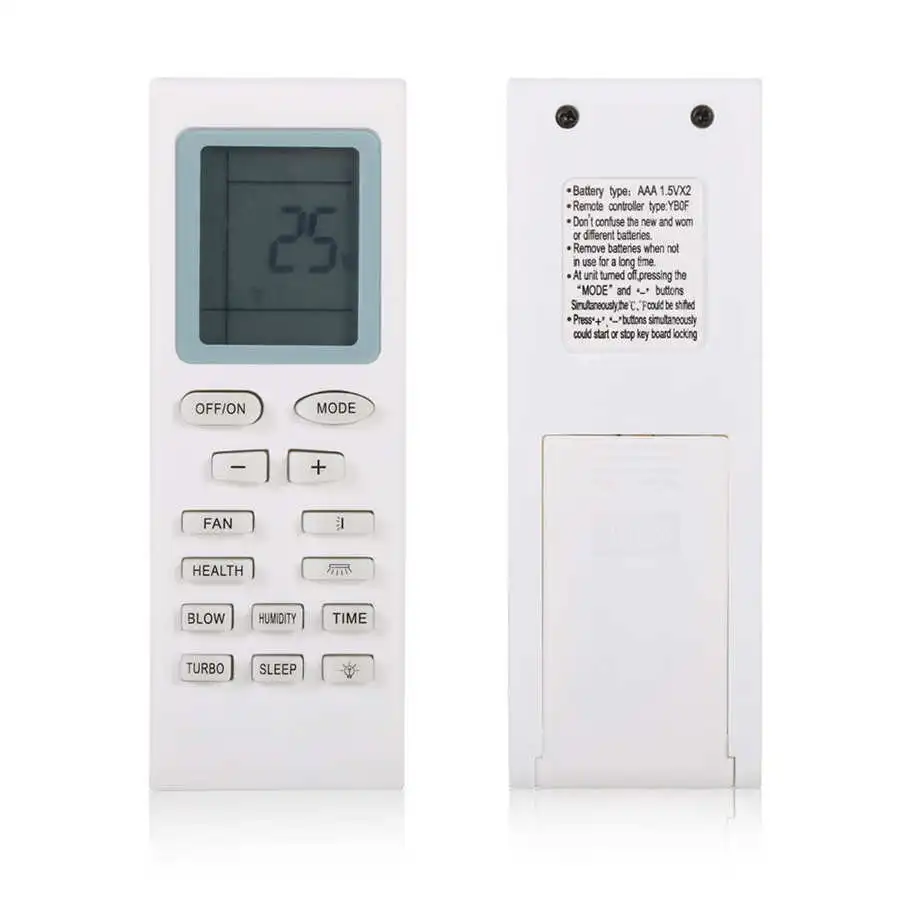 Особенности: 1. Пульт дистанционного управления подходит для Gree YBOF, а также подходит для других моделей. 2. Низкое энергопотребление позволяет вам работать на большом расстоянии. 3. Экран удобен и прост в эксплуатации, и не требуется Программирование или Настройка. 4. Этот пульт дистанционного управления с полными функциями и удобным прикосновением принесет вам удовольствие в максимальной степени. 5. Встроенные функции часов и таймера практичны для ежедневного использования.