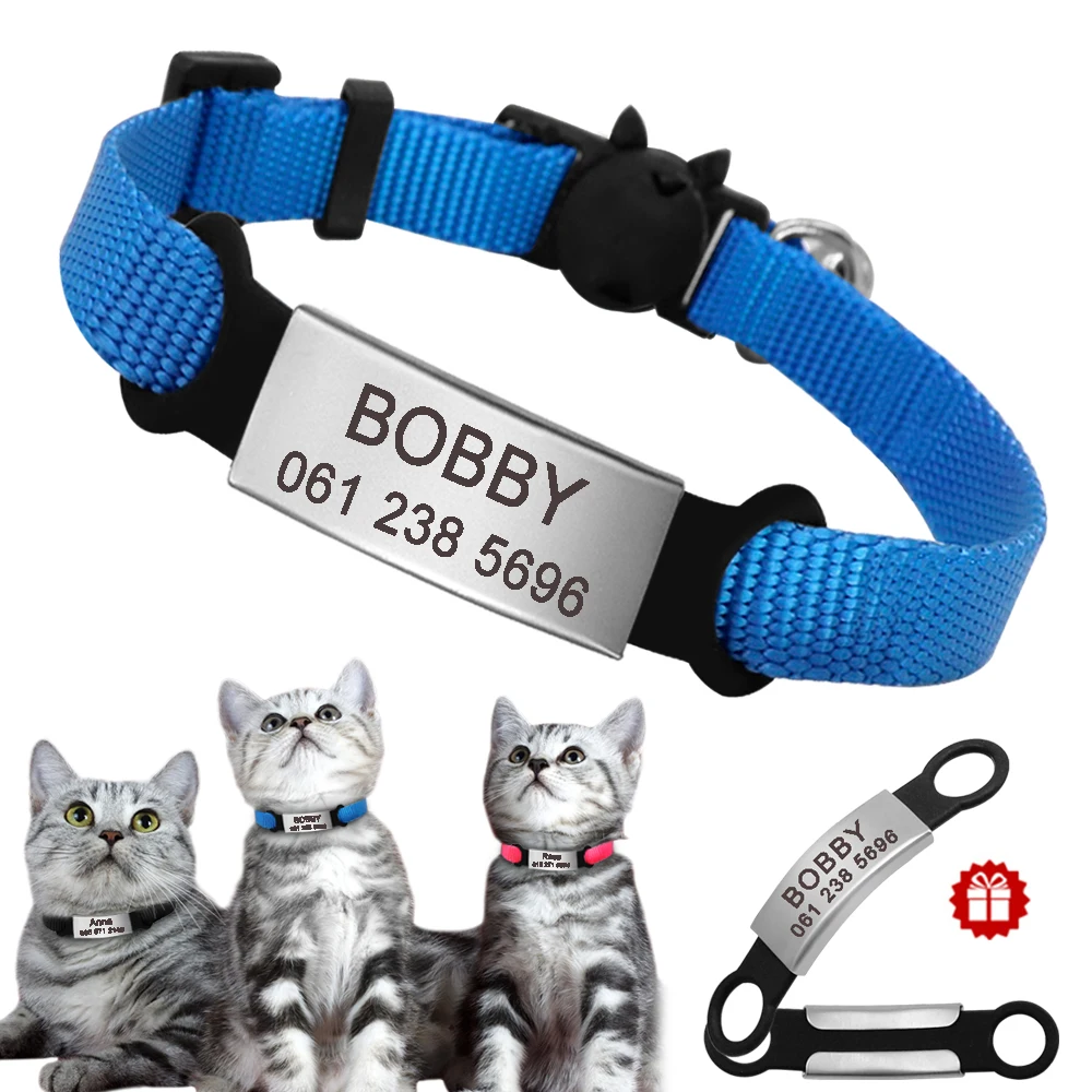 Ошейник для кошек, нейлоновый ошейник для кошек с персонализированными идентификационными метками, регулируемые воротники, ожерелье для маленьких собак, аксессуары для домашних животных