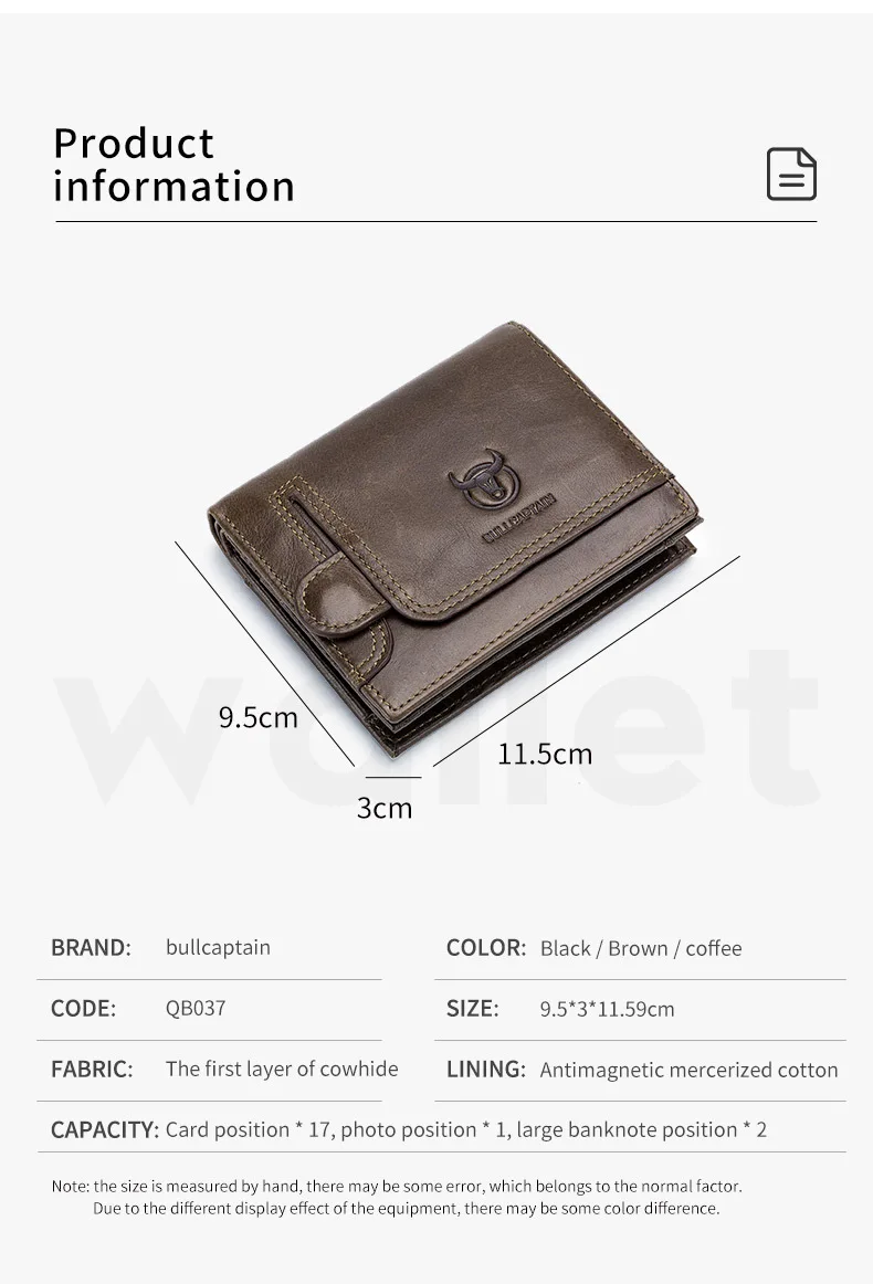 Кошелек мужской из натуральной воловьей кожи, дизайнерский бумажник на молнии с кармашком для мелочи и кредитницей