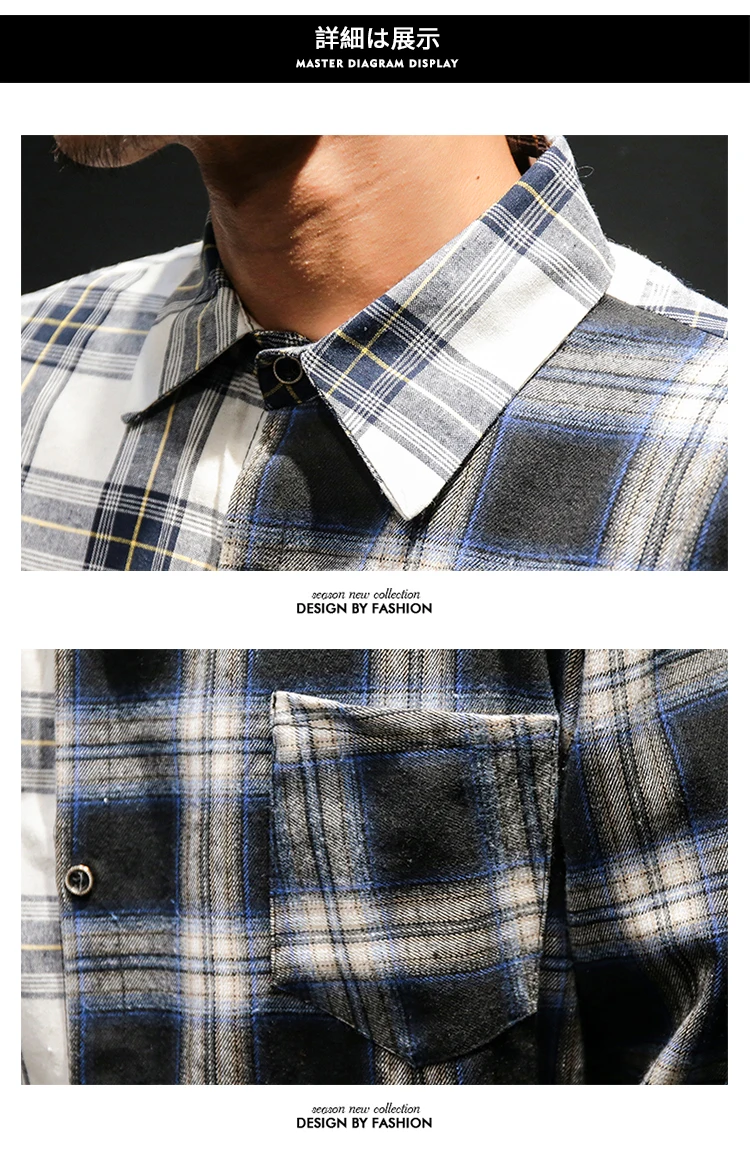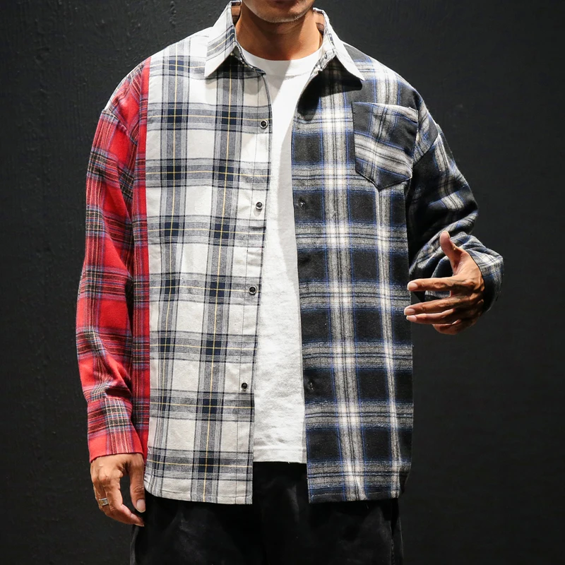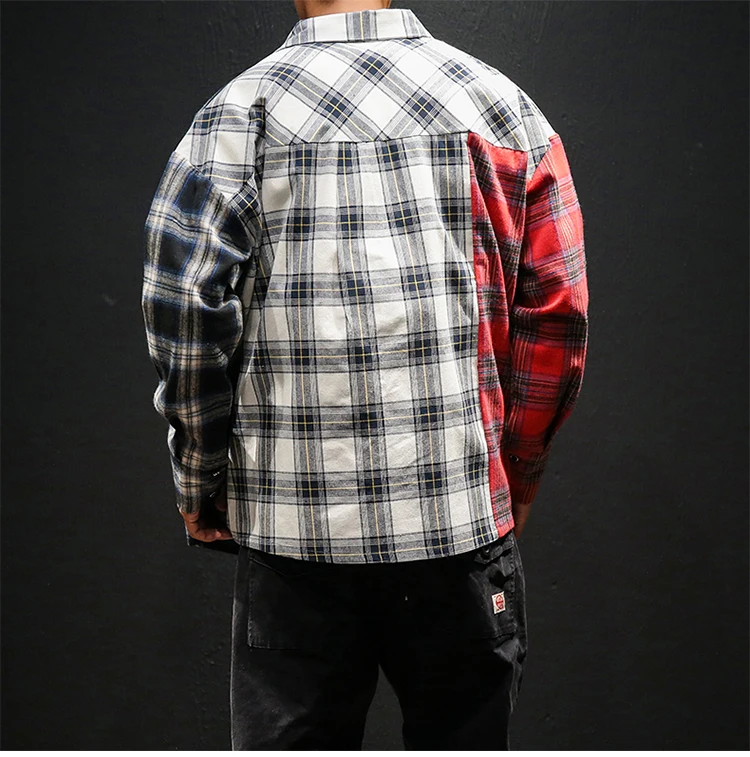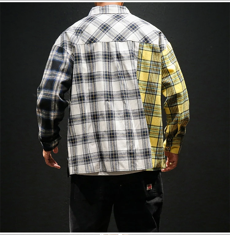 Рубашка мужская повседневная в клетку, уличная одежда в стиле хип-хоп, панк-рок, с длинным рукавом, свободного покроя, весна-осень 2022
