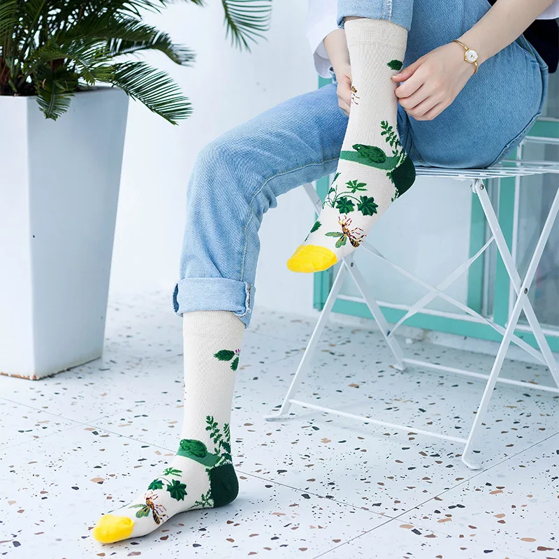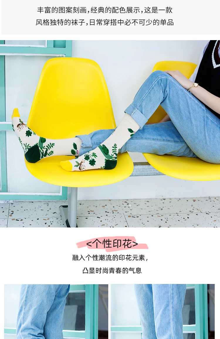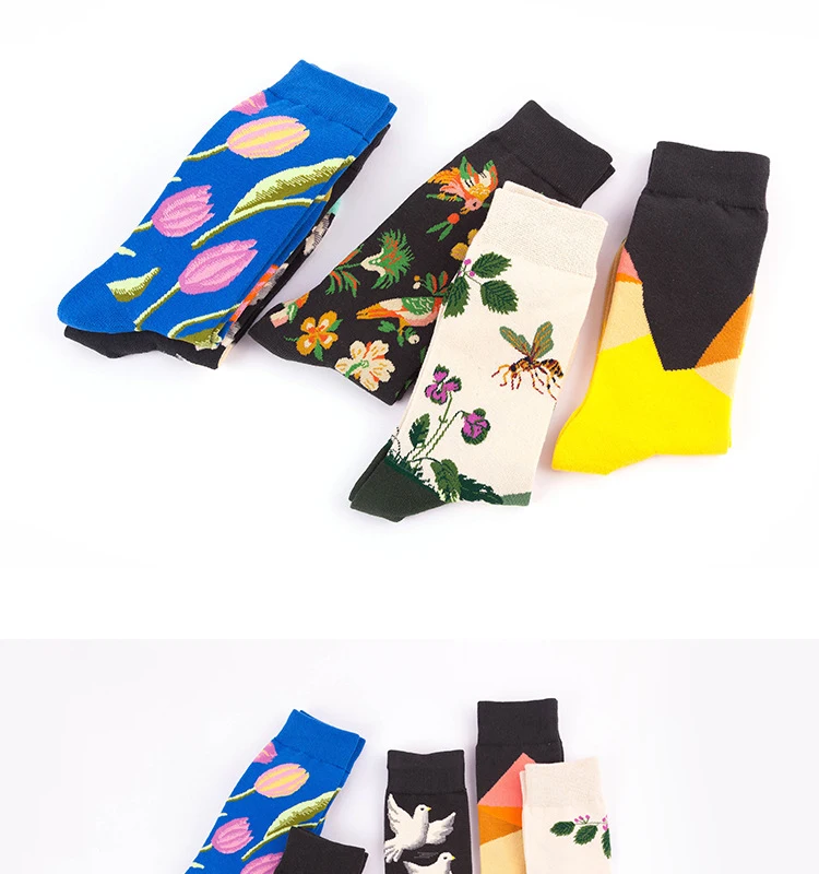 Носки мужские и женские хлопковые с геометрическим рисунком, уличная одежда в стиле хип-хоп для скейтборда, носки унисекс с акулами, растениями, животными