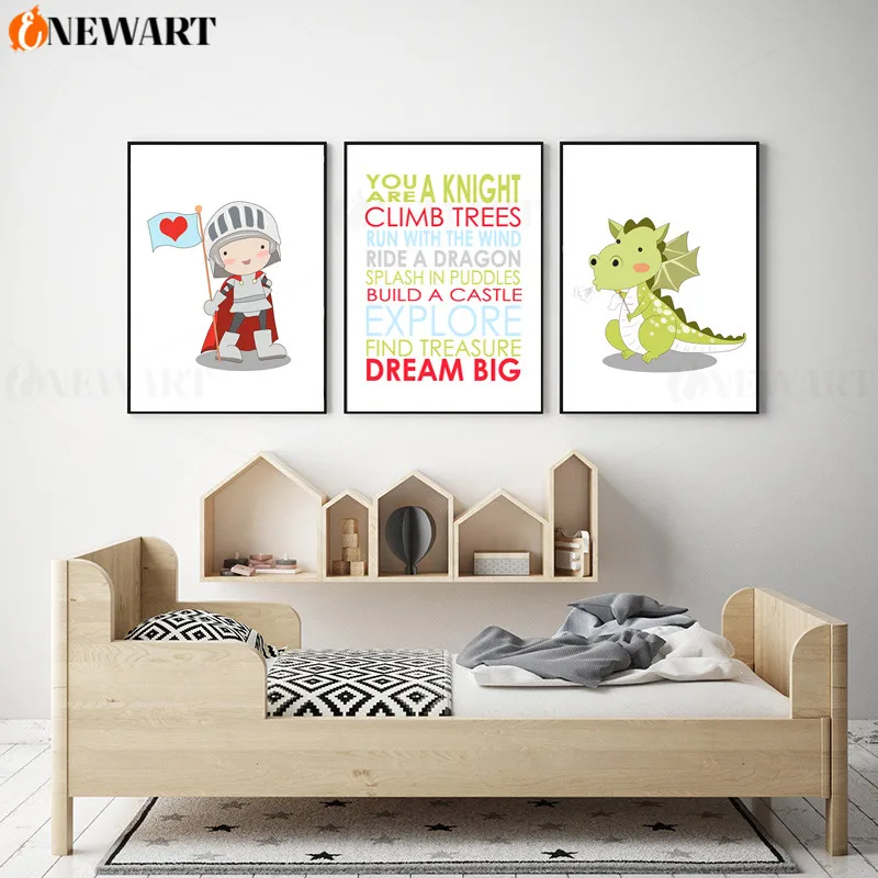 Плакат с драконом и мультяшными животными, Настенная картина для де...
