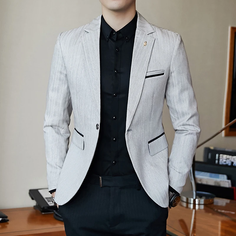 Полосатый пиджак мужской Slim Fit Блейзер Slim Masculino Бизнес Пов...