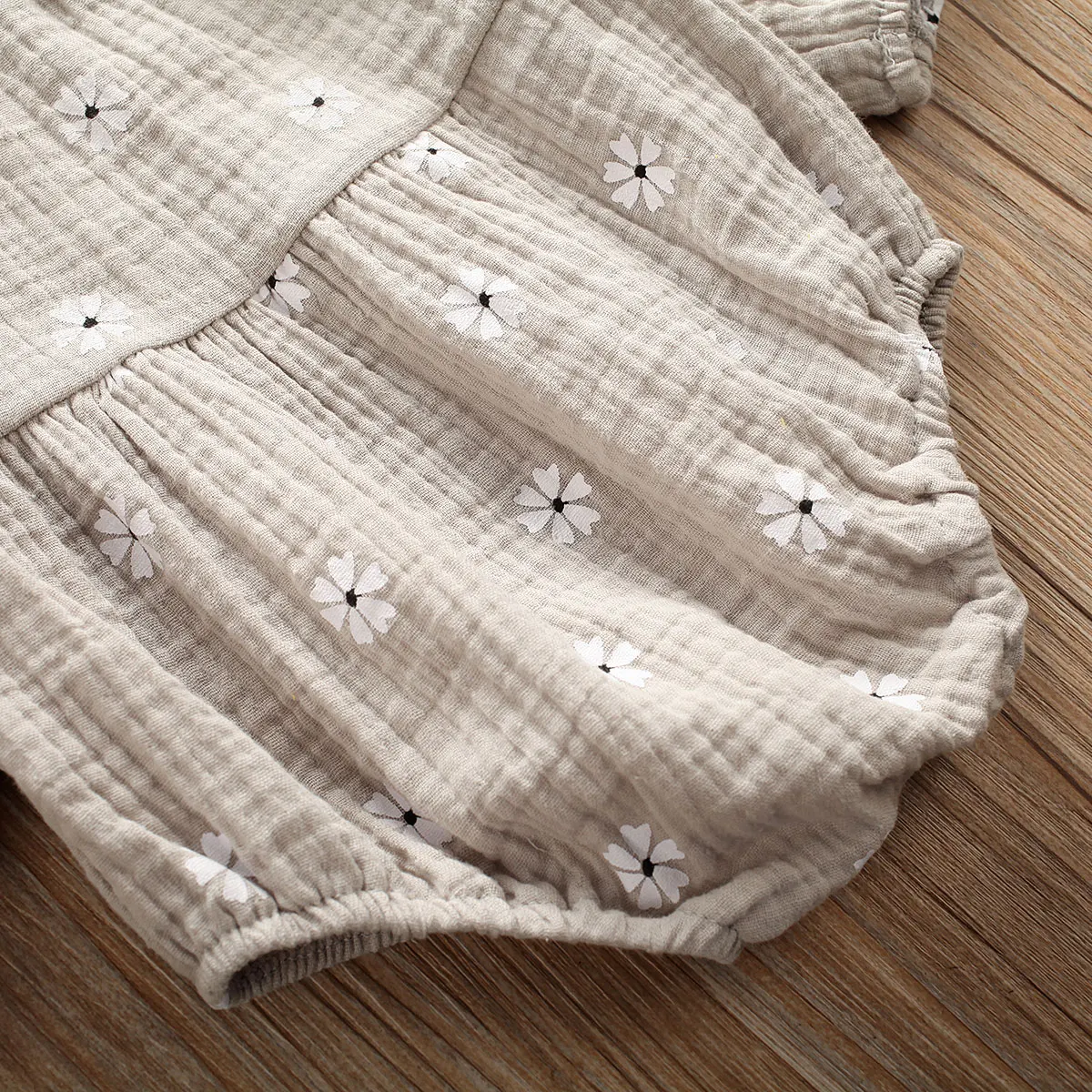 Комбинезон детский с цветочным принтом, хлопок, лен, весна-осень