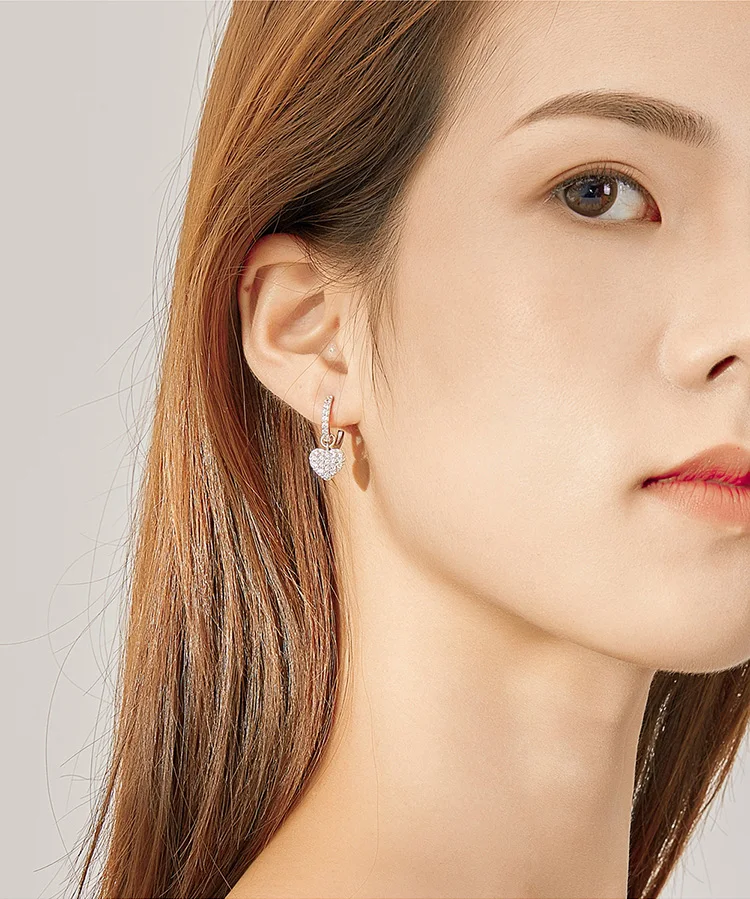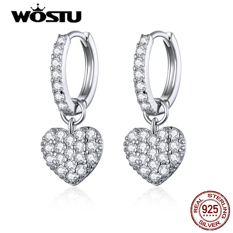 WOSTU, настоящее 925 пробы, серебряные, уникальные серьги в форме сердца для женщин, блестящие циркониевые висячие серьги, ювелирные изделия для влюбленных CQE821