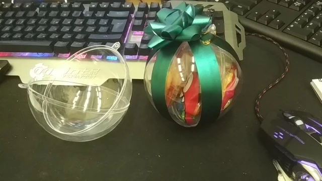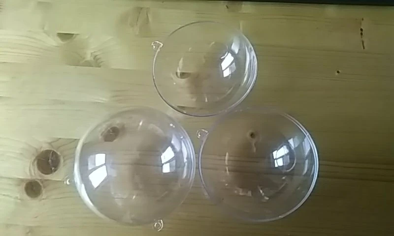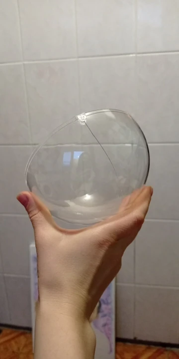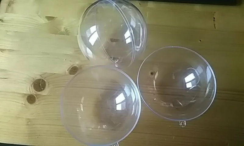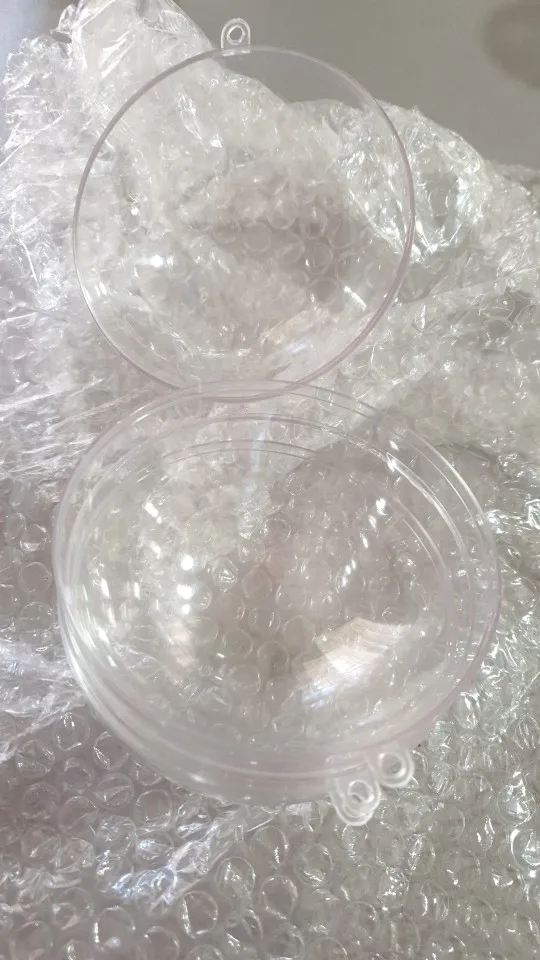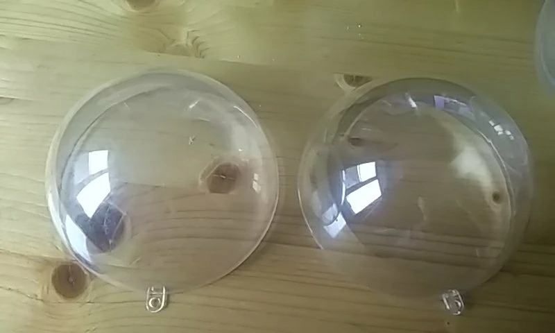 Четыре пластиковых полусферы с петельками. У одной сферы половины держится хорошо, туго соединились, у второй придется использовать клей, слабо держатся. Упакованы были очень хорошо, во много слоёв пупырки и сверху ещё толстый слой воздушного секционного антиударного пакета.