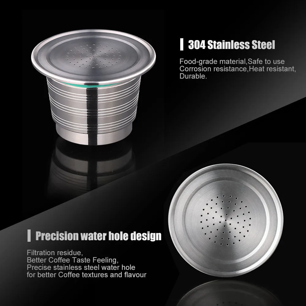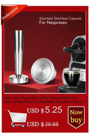 Бренд: Dalinwell,100% новые и высококачественныеМногоразовые капсулы nespresso,Плоское основание из нержавеющей стали, экономичное и даже при утрамбовке кофе.