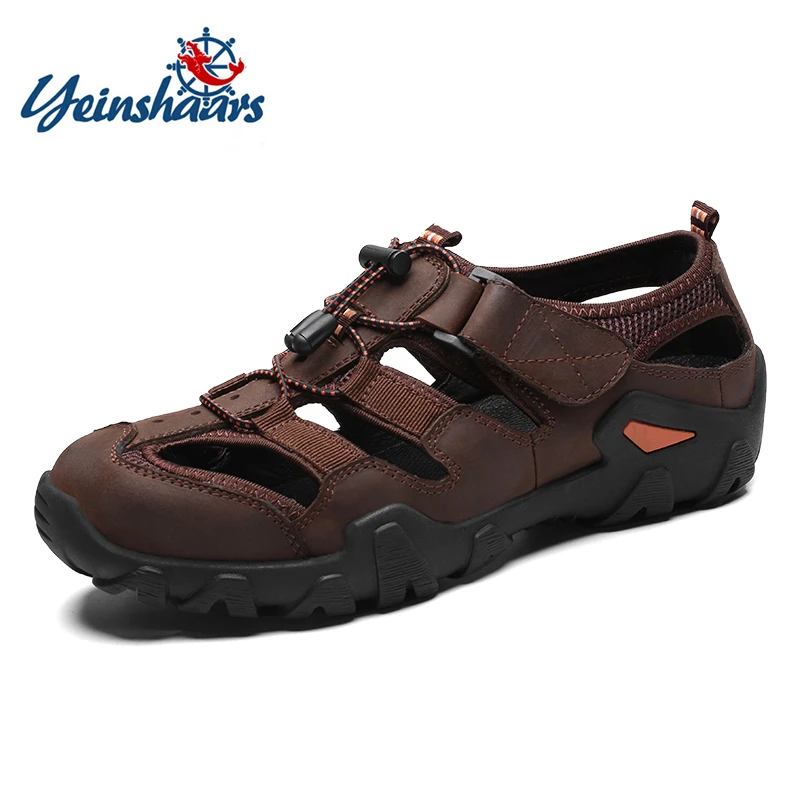 Сандалии YEINSHAARS мужские из натуральной кожи, мягкие повседневные босоножки, модная летняя обувь, Тапочки, большие размеры