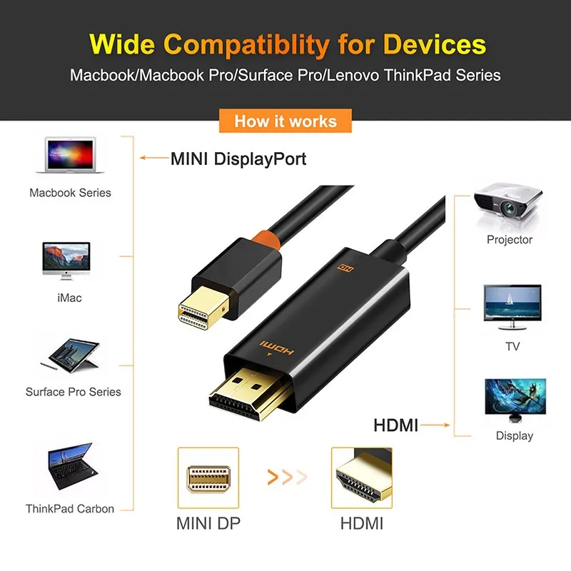 Mini Displayport для HDMI-совместимый кабель 1,2 DP кабель адаптер Mini DisplayPort кабель 1080P для ТВ C054
