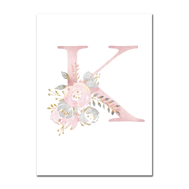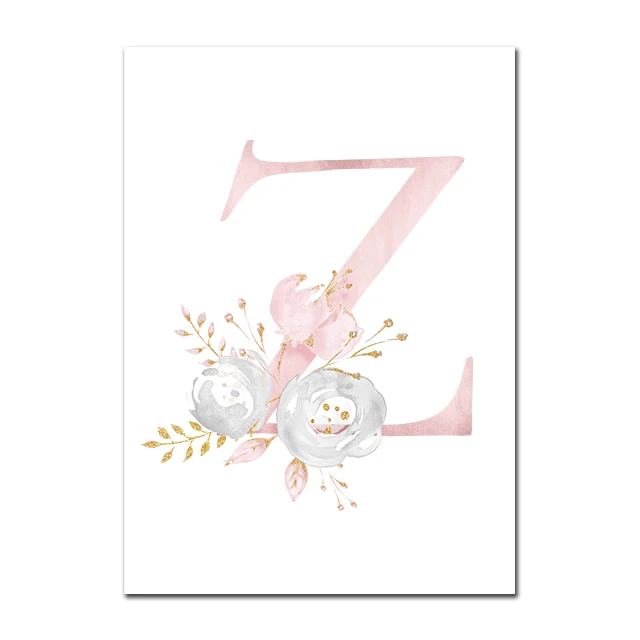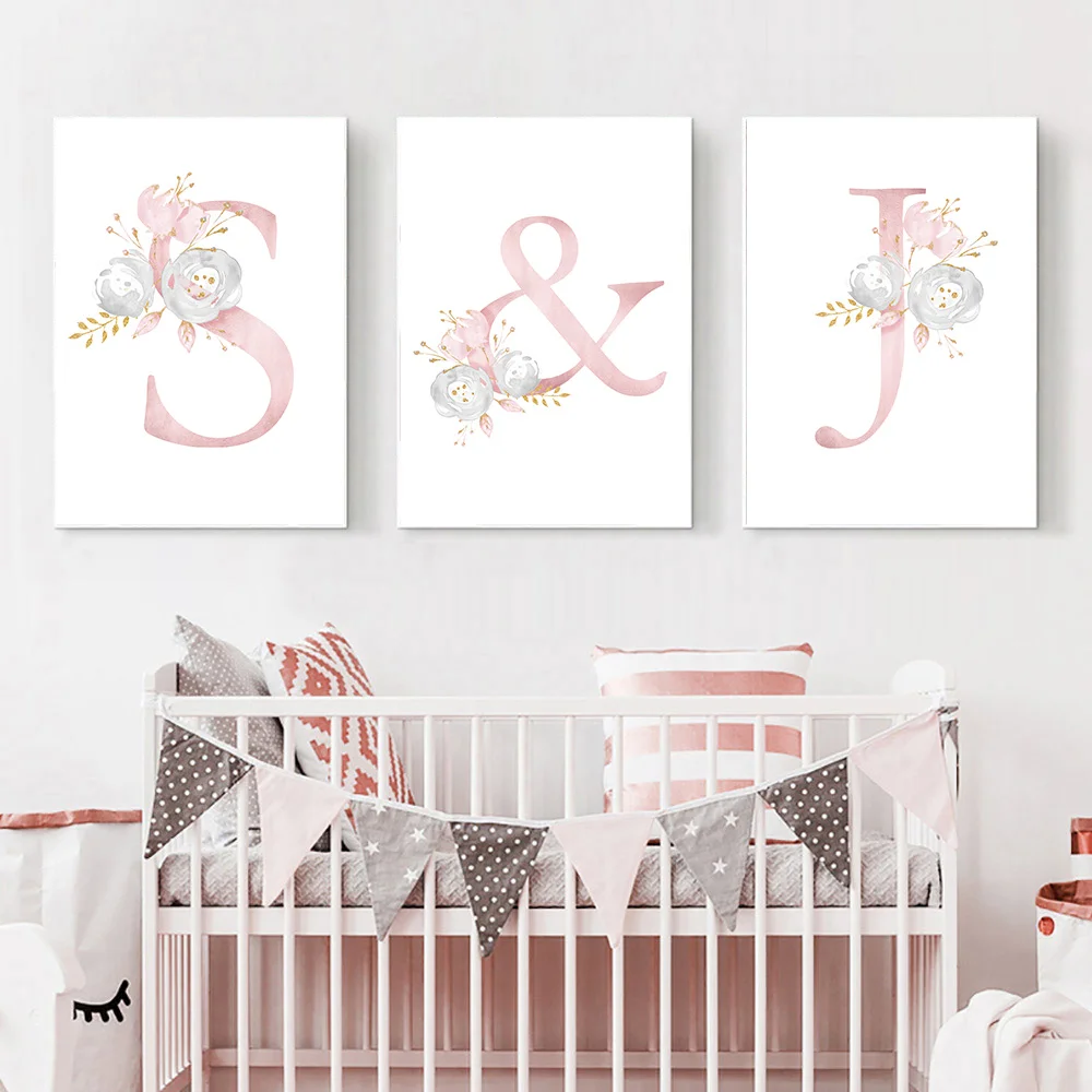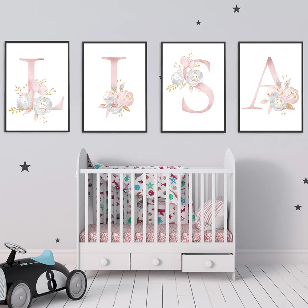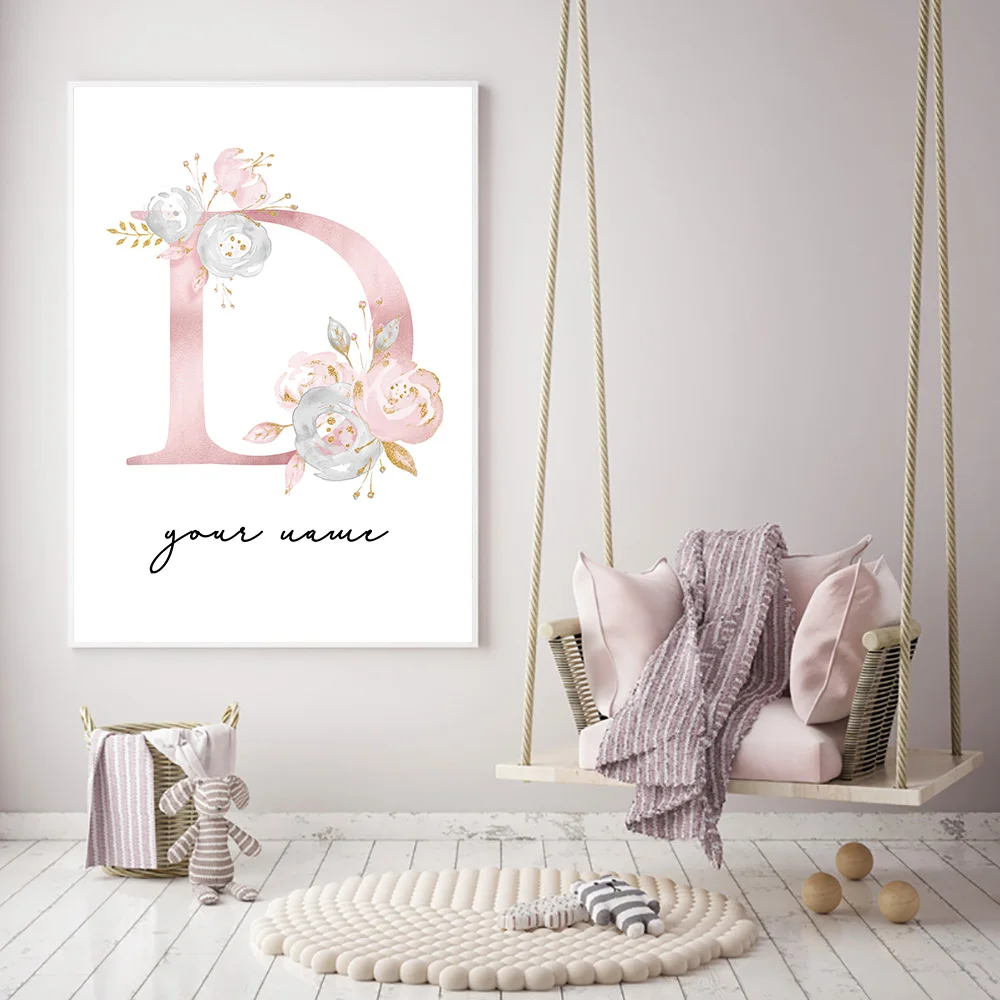 Детские постеры с персонализированным именем девушки, фото на заказ, Настенная картина с розовыми цветами, картины на холсте для комнаты девочек