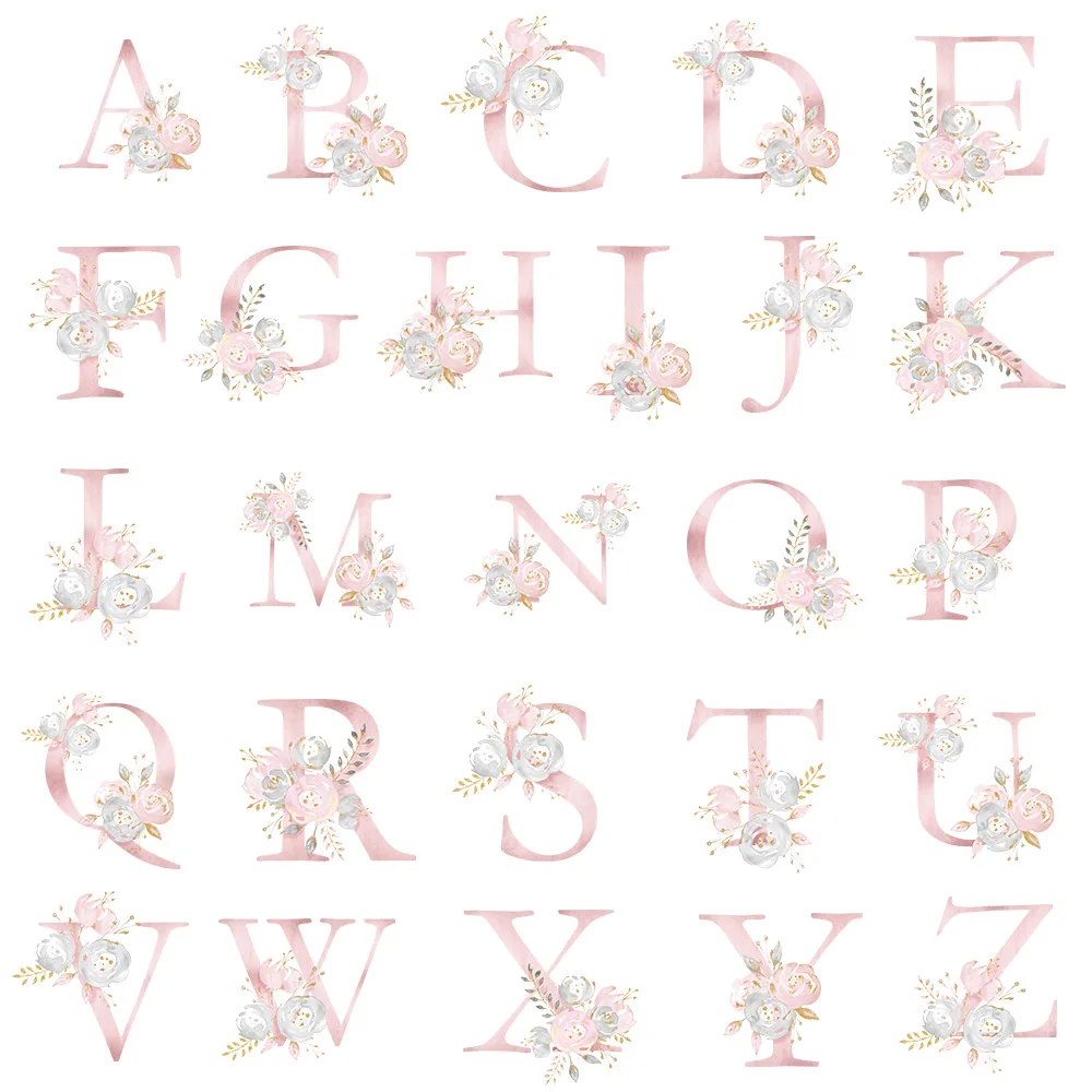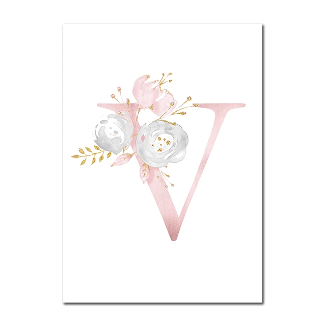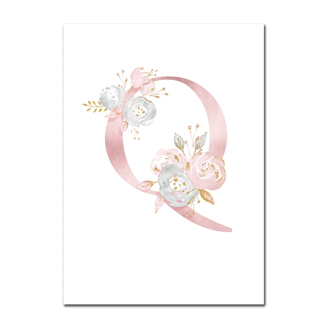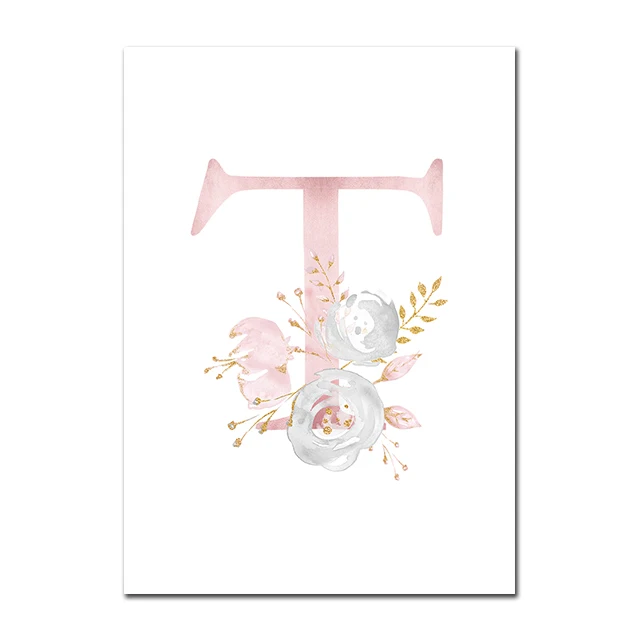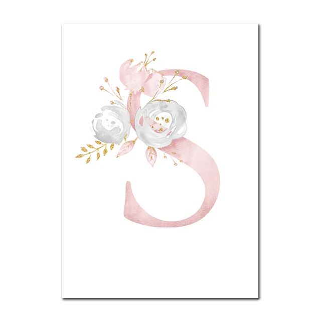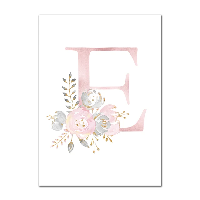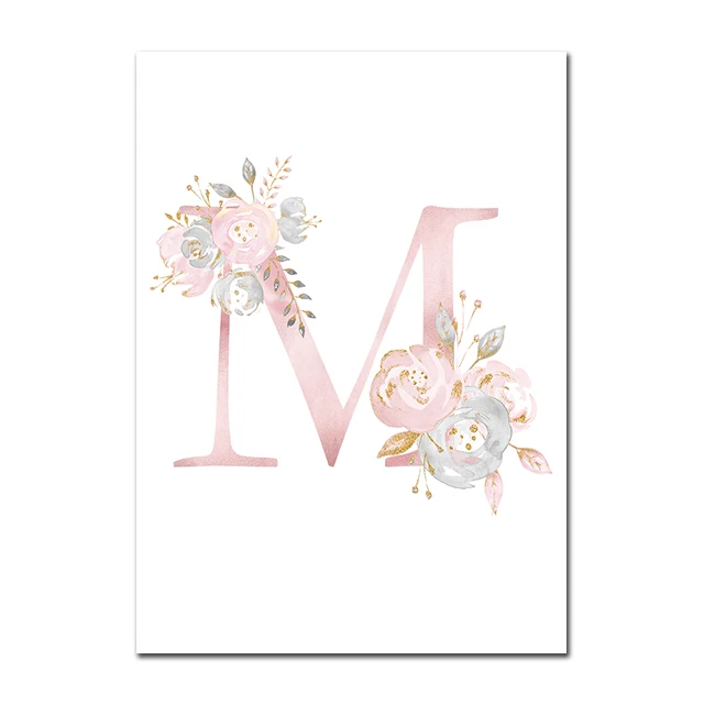 Детские постеры с персонализированным именем девушки, фото на заказ, Настенная картина с розовыми цветами, картины на холсте для комнаты девочек