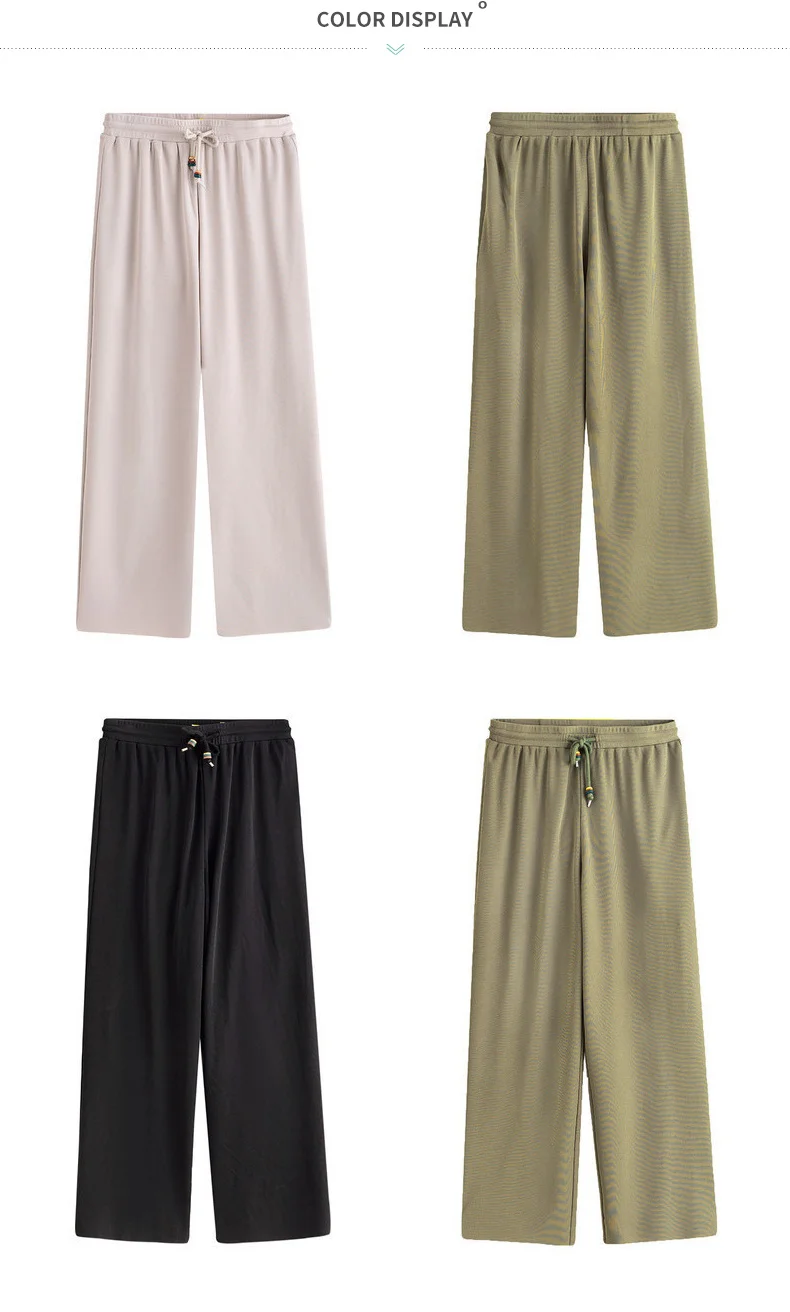 Очень классные штаны именно для дома оказались - не мнутся, колени не вытягиваются (вообще!), легкие, но не холодные, затяжки не вытягиваются. В общем, я так впечатлилась, что взяла вторые (первые были беж). В этот раз взяла поменьше, 28 на талию 67, бедра 94-96 - идеально, резинка не давит, и не надо затягивать шнур, как на бежевых 29го размера. Качество одинаковое с бежевой парой, полностью соответствуют фото, не просвечивают.