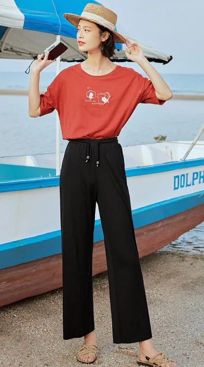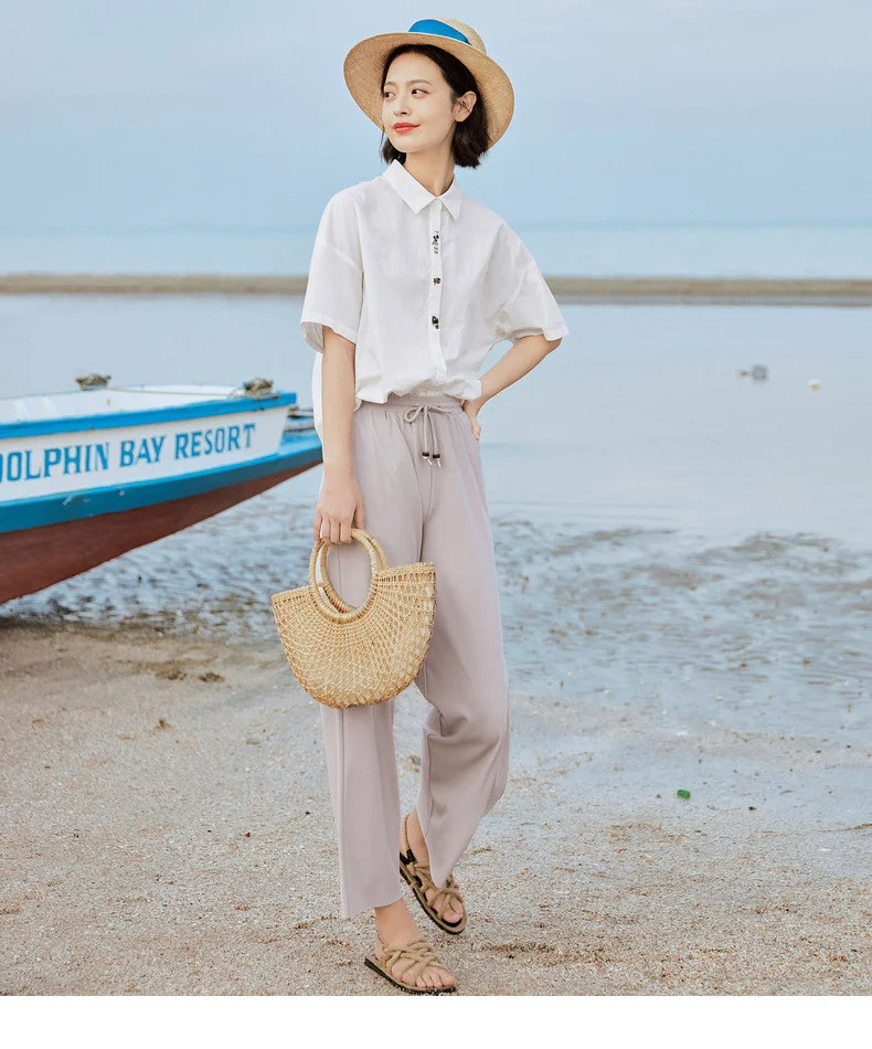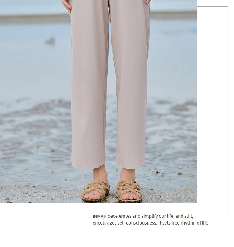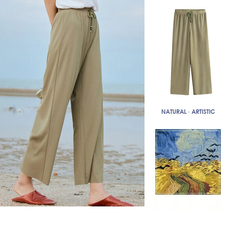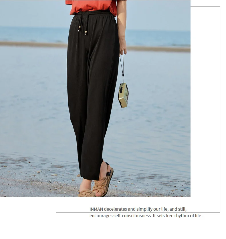 Женские пляжные брюки в стиле ретро, зеленые свободные брюки до щиколотки с эластичным шнурком, лето INMAN