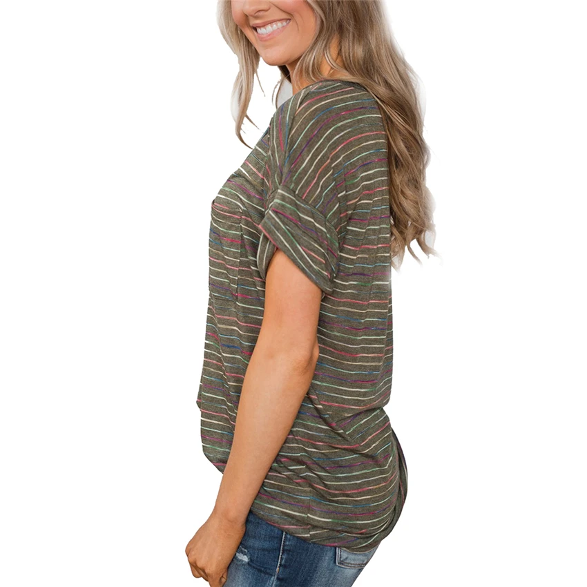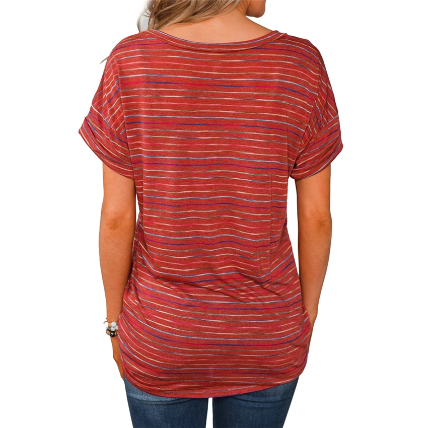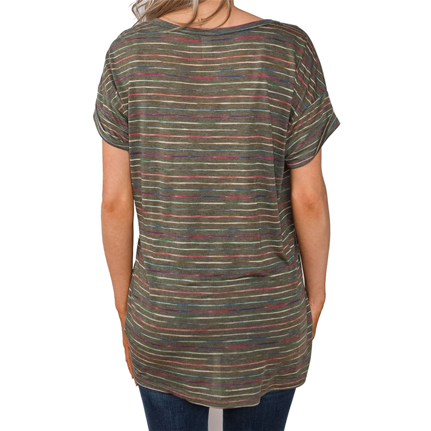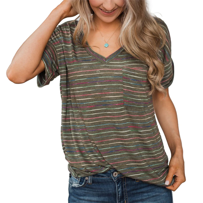 Женская футболка с V-образным вырезом, летний топ в полоску с коротким рукавом, новинка 2020, футболка, Повседневная Свободная футболка, Длинные Топы для женщин, уличная одежда