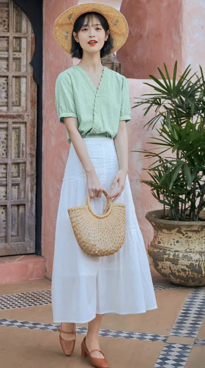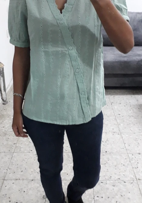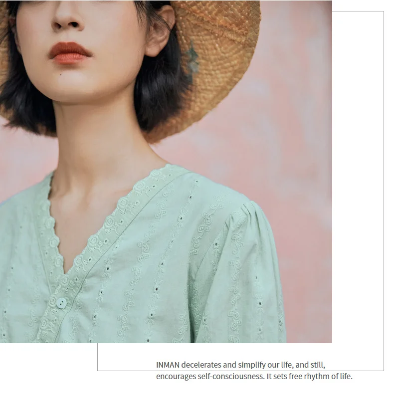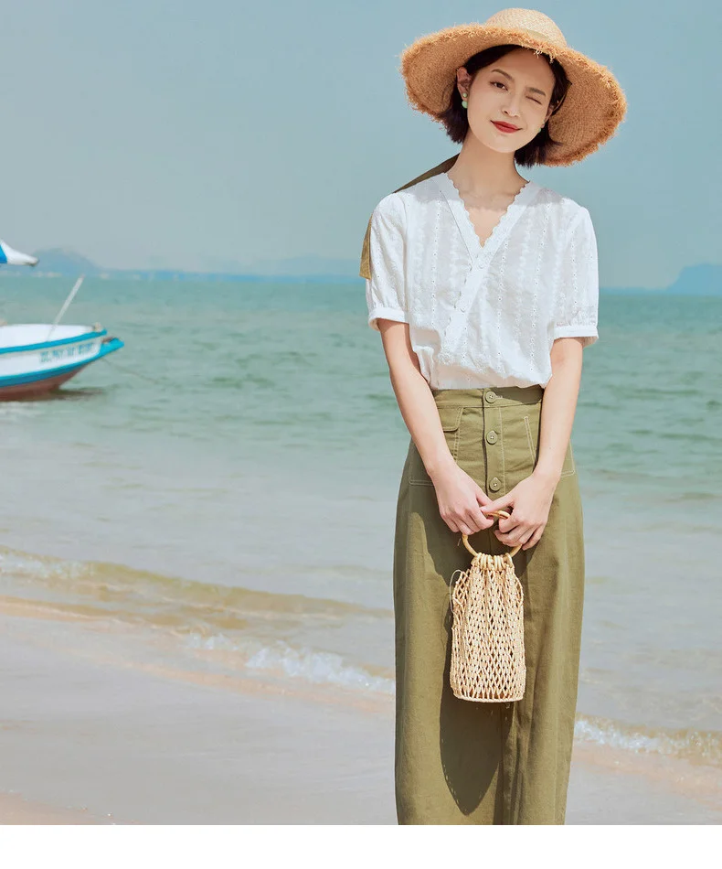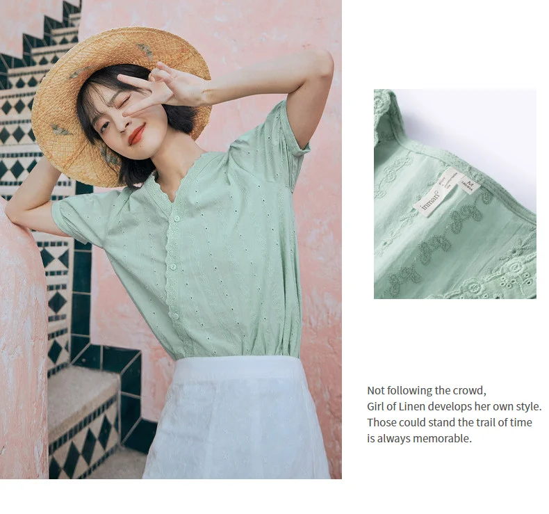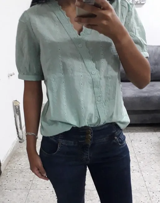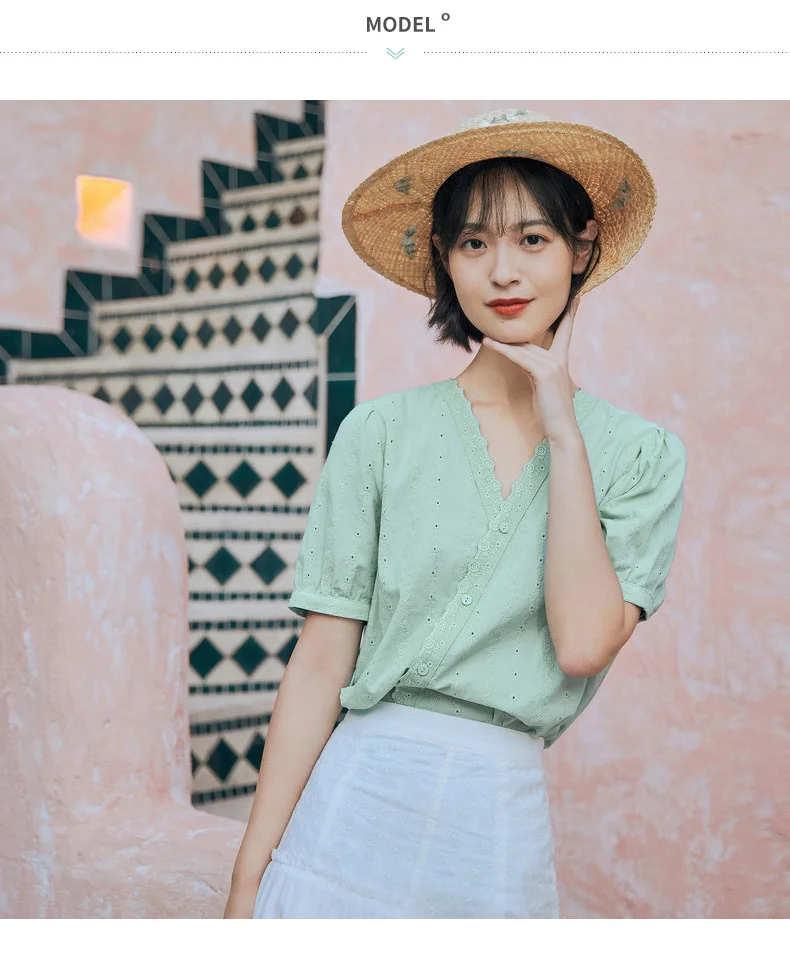Женская рубашка с коротким рукавом, V-образным вырезом и вышивкой