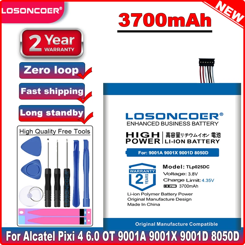 Аккумулятор LOSONCOER TLp025DC TLp025D2 3700 мА ч для Alcatel Pixi 4 6,0 OT 9001A 9001X 9001D 8050D OT-8050 мобильный телефон