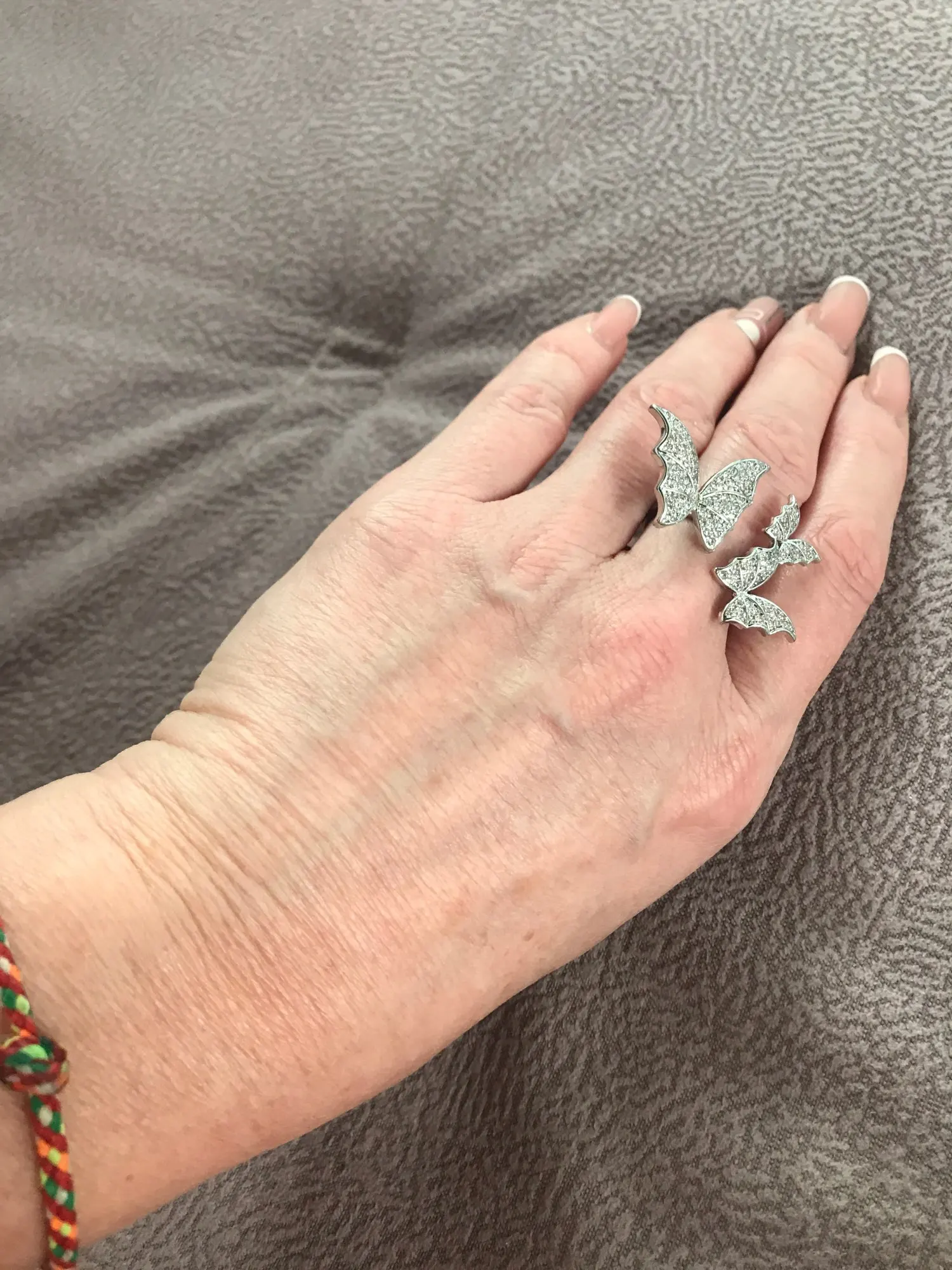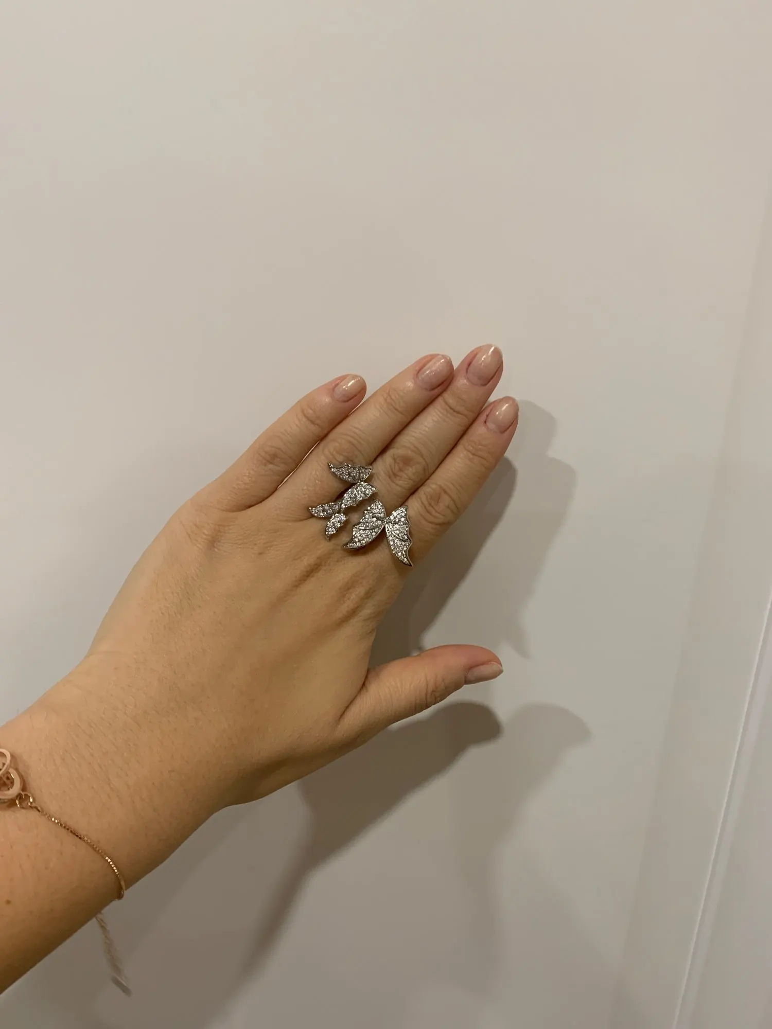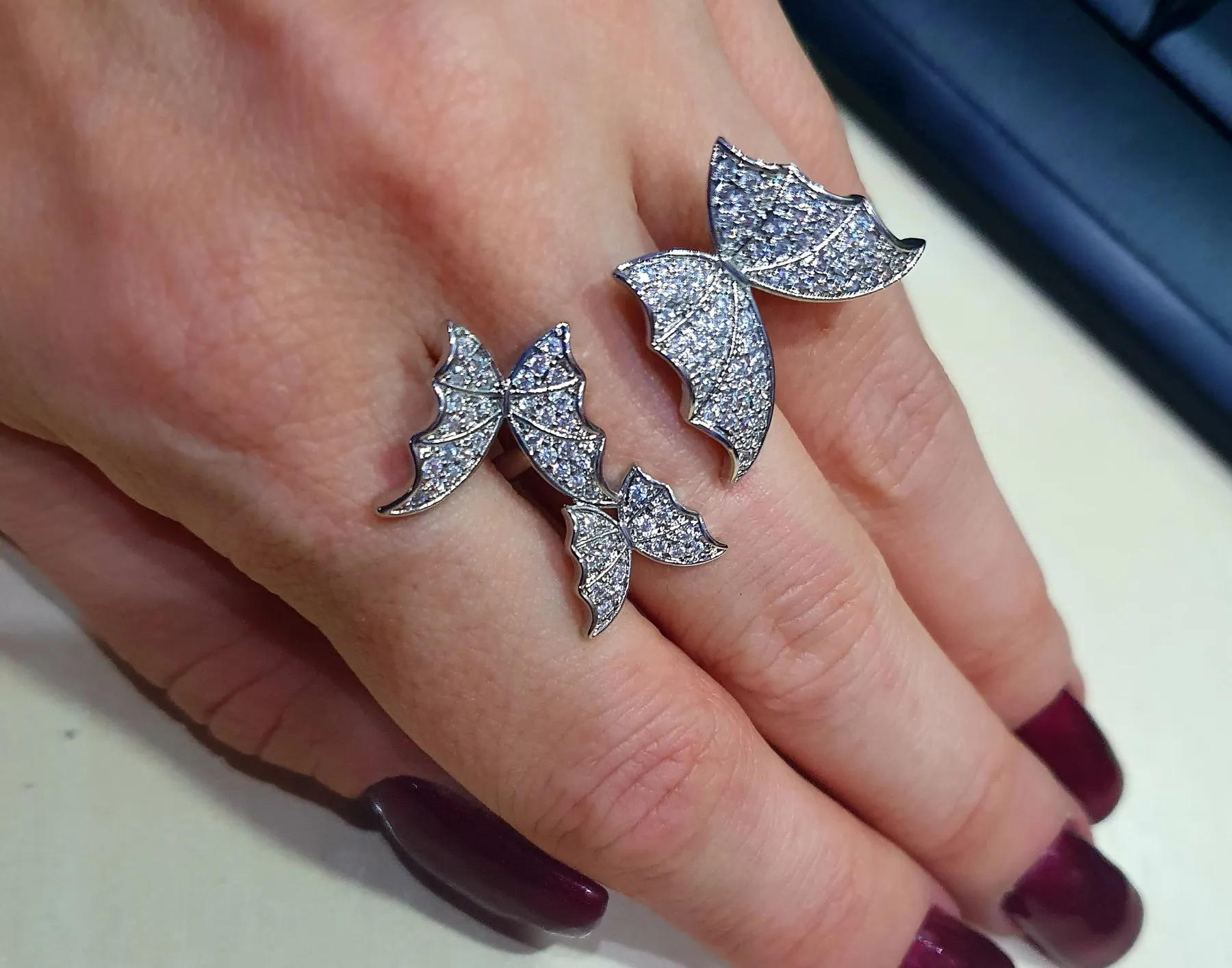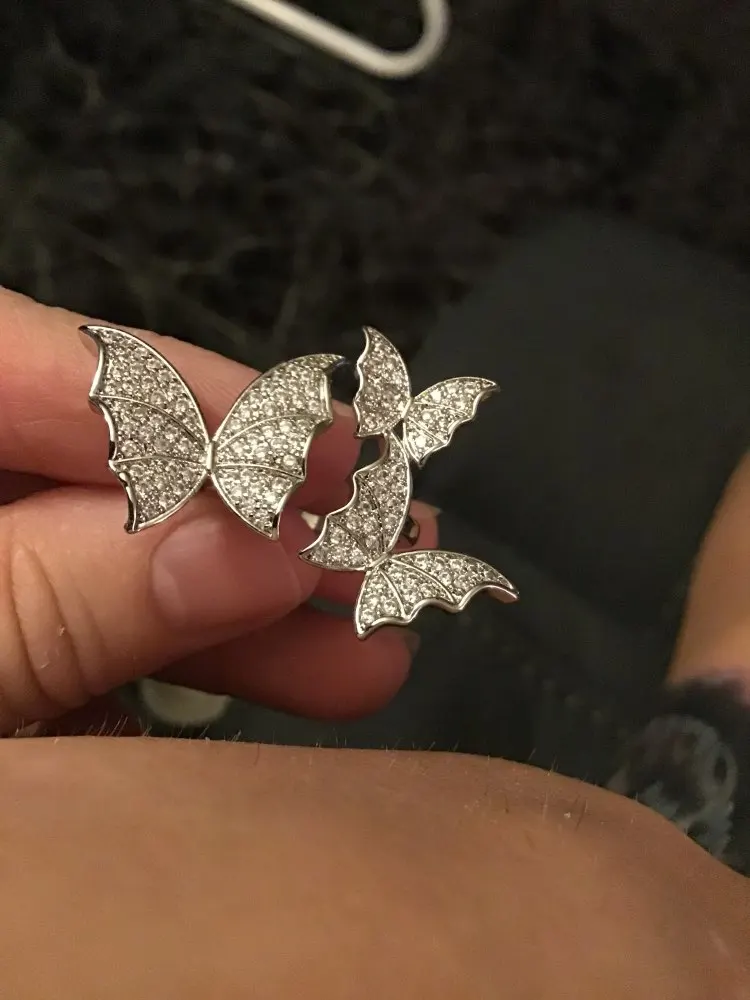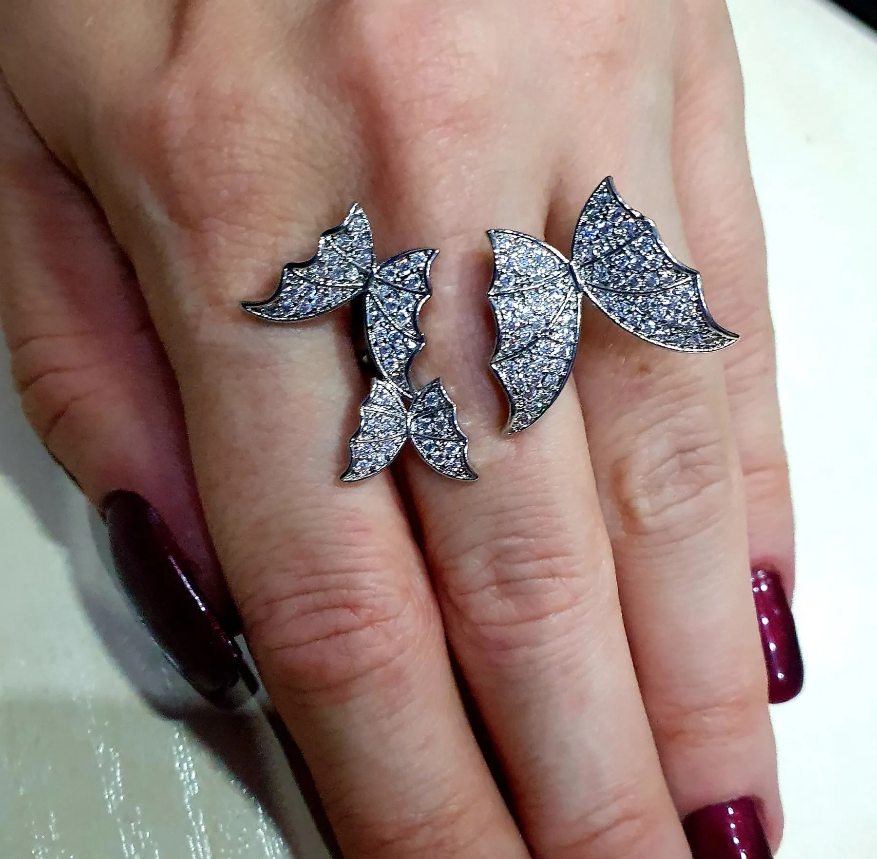 Товар получила быстро. Но кольцо немного отличается от картинки. Да, оно переливается, но "прожилки" не чёрные, как на картинке, а белые. Достала кольцо аккуратно, а маленькие бабочки уже шатались.... Второй раз мерию, а бабочки отвалились. Открывать спор не буду. Попрошу мужа, он мне их "сварит".