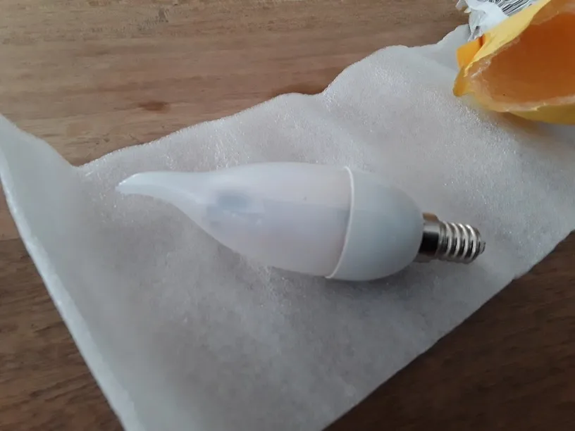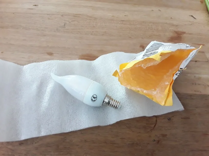 Я заказал лампочку на 6 Вт меньшей мощности и еще три мощности. Лампочки не имеют никакой информации о мощности или напряжении, поэтому нет способа узнать, что это такое, а какие другие, потому что они также освещают одинаково. В противном случае эффект пламени хорошо сделан и, кажется, работает хорошо