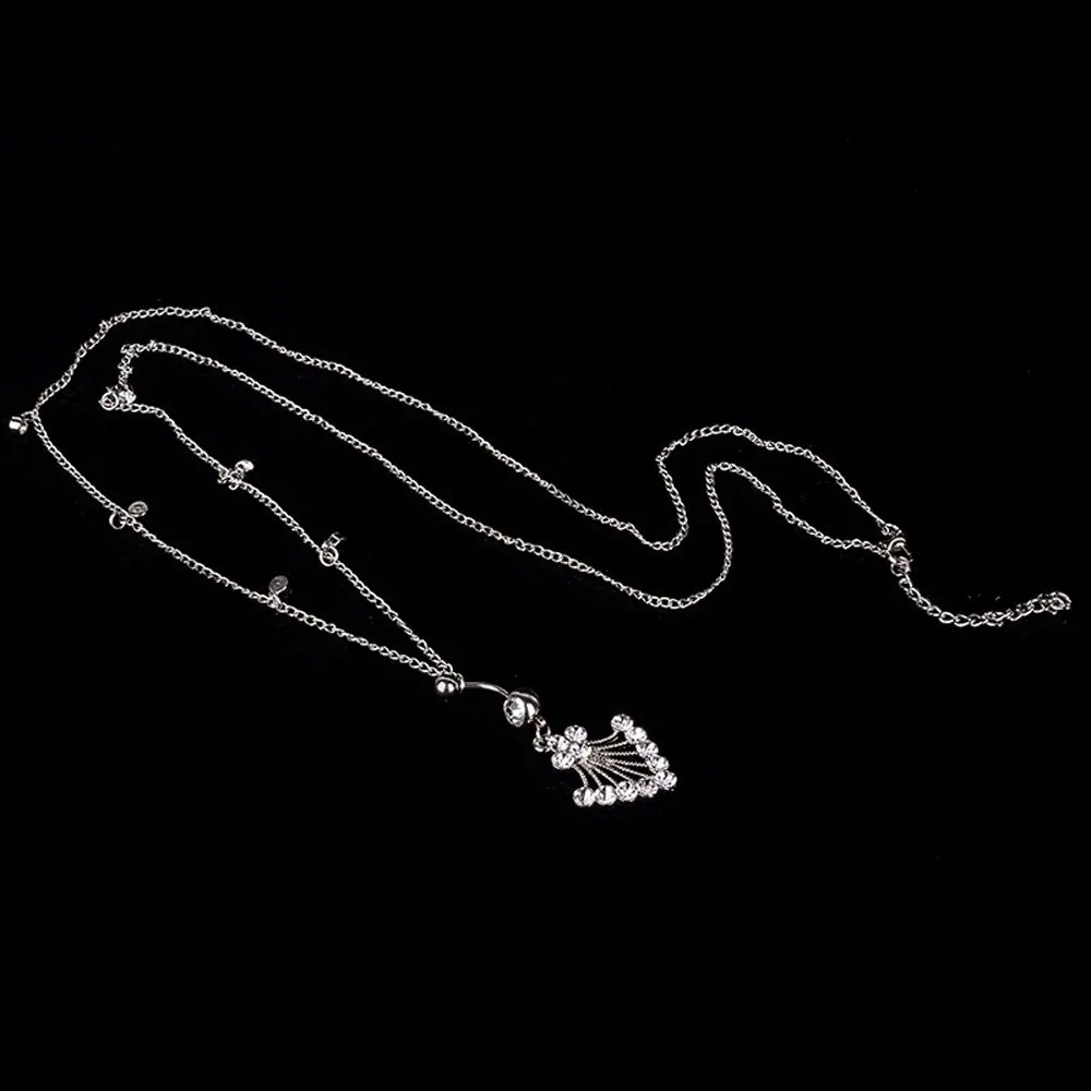 Синее циркониевое висячее кольцо для пупка с цепочкой на талию, стальная подвеска в форме павлина-хвоста, ювелирное изделие для пирсинга пупка Ombligo