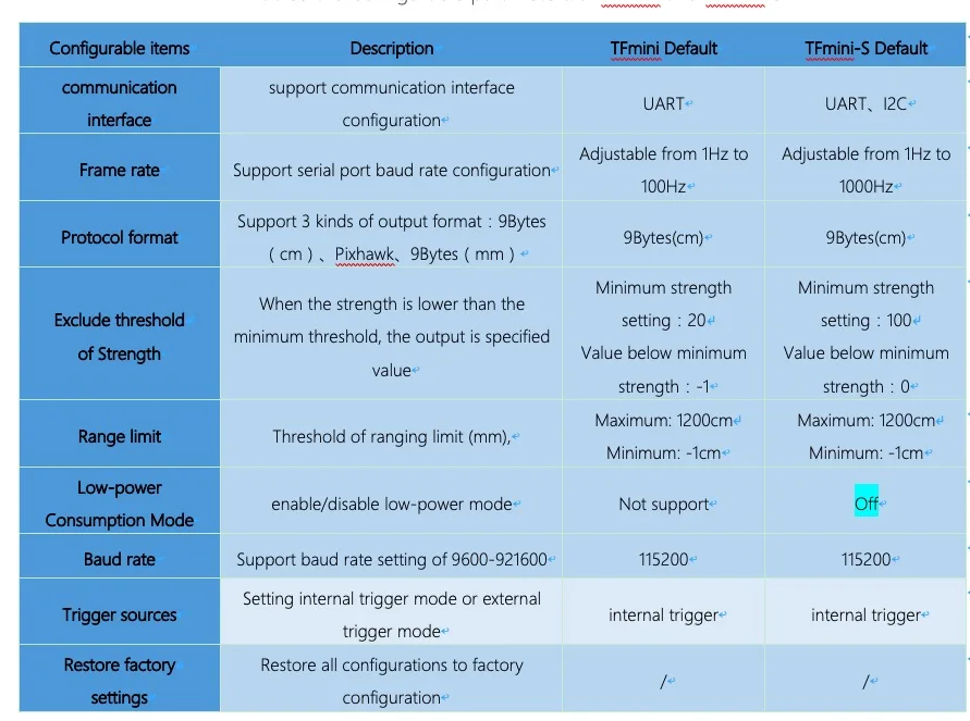 Сравните с TFmini,TFmini-S имеет следующие преимущества: