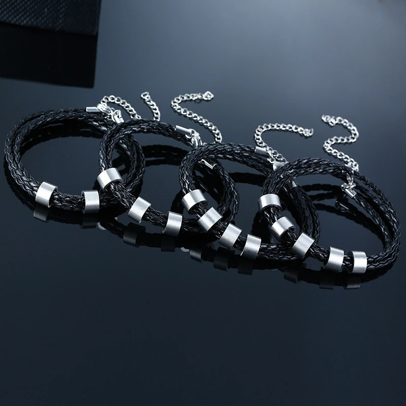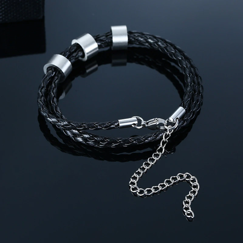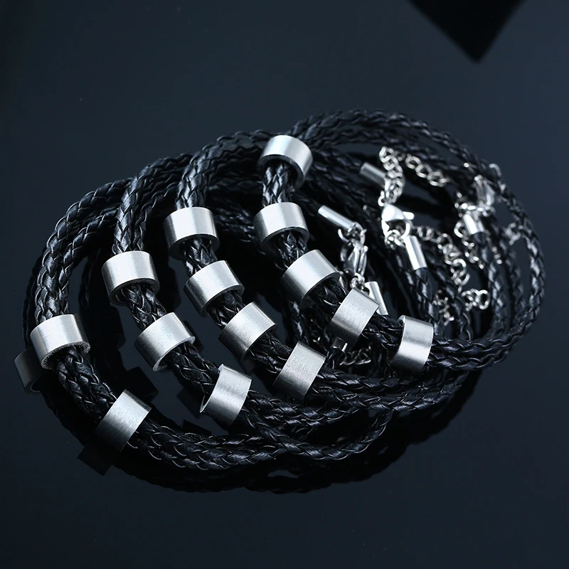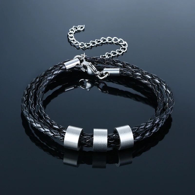 Персонализированный мужской кожаный браслет с индивидуальными бусин...