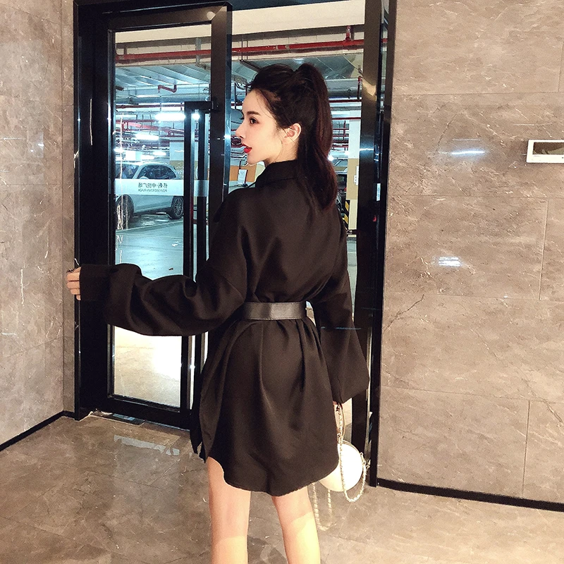 Элегантный блейзер с поясом, мини-платье для женщин, длинный рукав, негабаритная куртка, Офисная Леди, облегающая, осень, лето, весна, уличная одежда