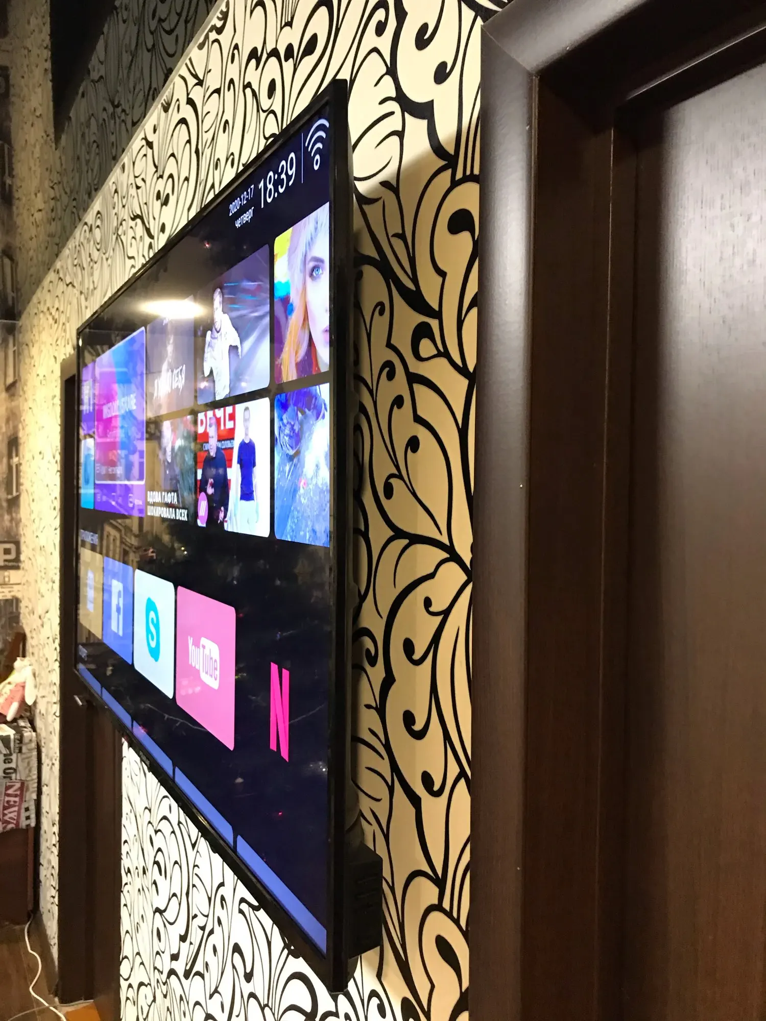 Отличный телек! Лёгкий, работает нормально, видит и цифровые и аналоговые программы, к вайфаю прицепился без проблем, подключилась комп. клавиатура и мышка, интернет работает, видео не виснет, приложения качаются. Доставка 4 дня Москва, до квартиры.