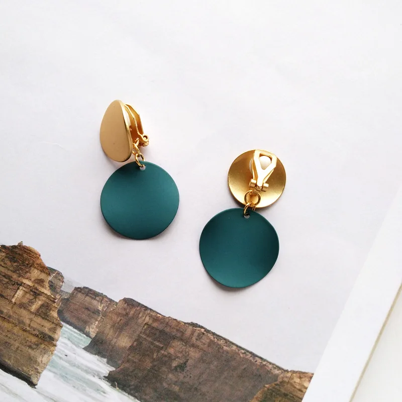 Женские круглые серьги-клипсы без пирсинга, золотистые разноцветные металлические клипсы геометрического дизайна, стильные украшения для ушей, 2020