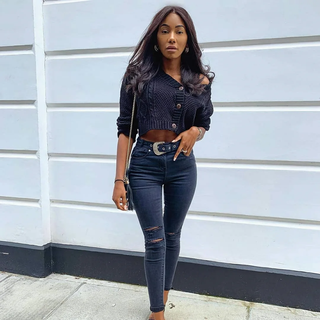 Женский трикотажный кардиган с открытыми плечами, V-образным вырезом и пуговицами