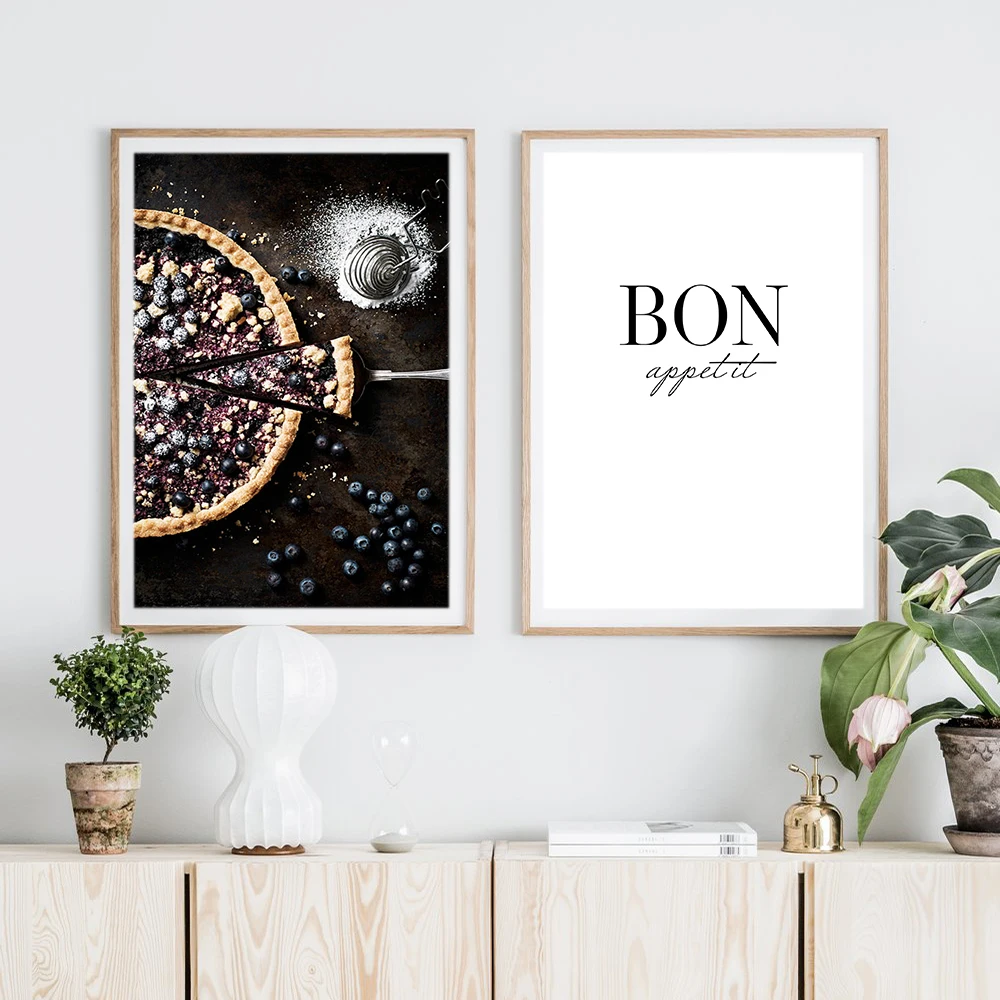 Украшения для кухни, коричневые, холст, кофейные принты и плакаты, Черничный пирог, настенное искусство для десерта, картина для гостиной настенные картины